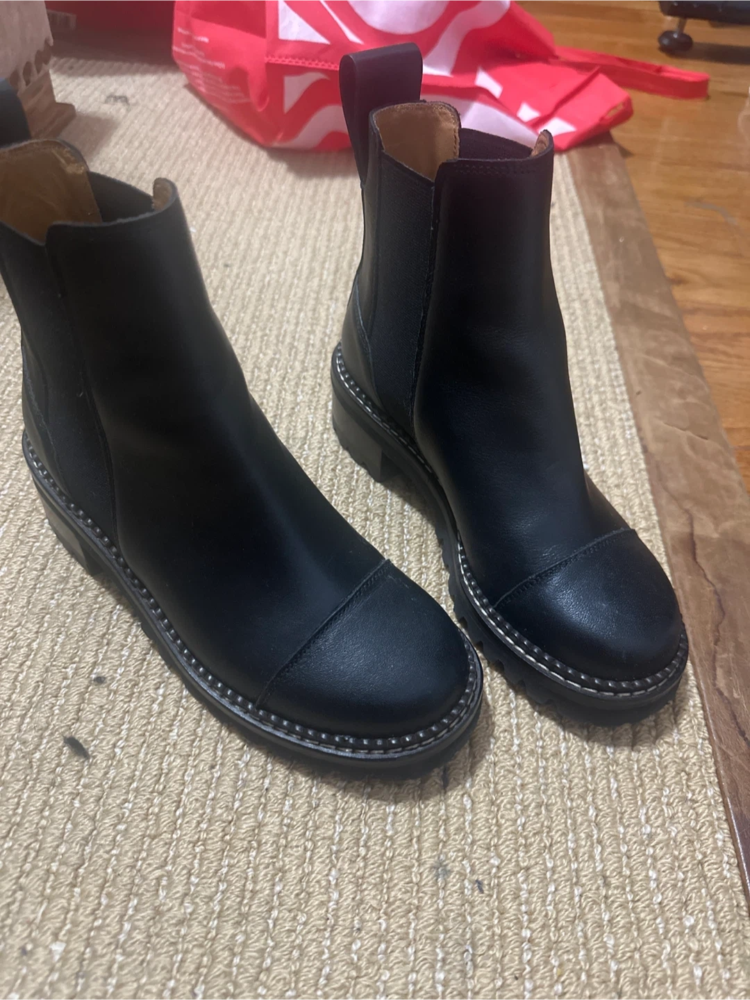 These are a pair of See By Chloé black leather ankle boots in great condition! They are a size 35 which is equivalent to a US size 5 The boots feature a stylish design and are made from high-quality leather. Perfect for adding a touch of chic to any outfit! Purchased at Saks Fifth Avenue