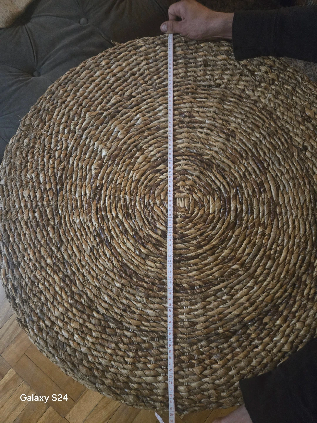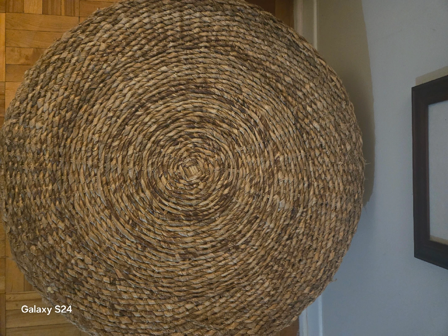 Selling a woven round ottoman footstool. It's in great shape and would be a lovely addition to any living space! It's perfect as an extra seat or just to kick your feet up after a long day
