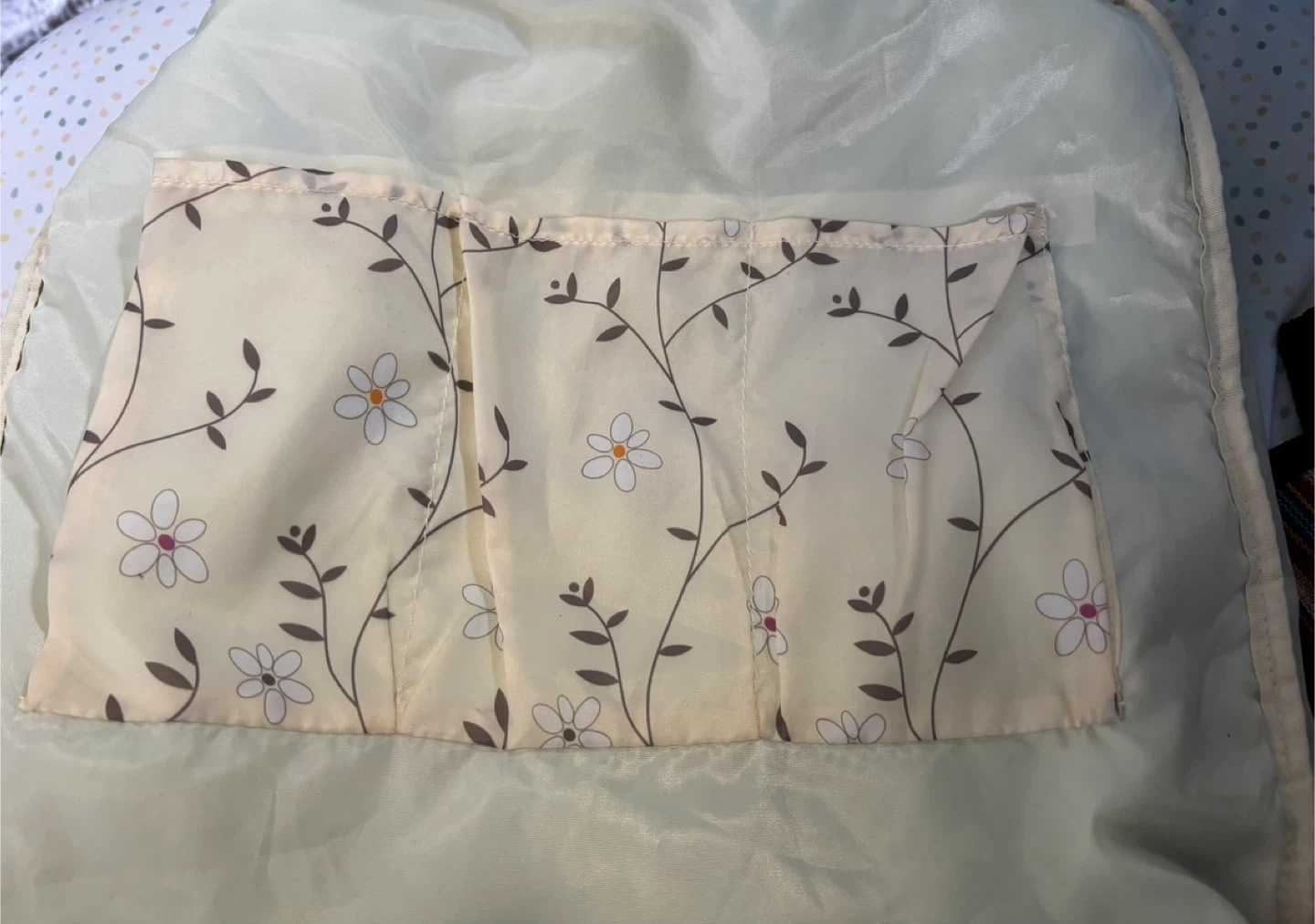 On exterior of bag are 2 large gusseted pockets on each side, with pockets at either end of bag, perfect water bottle. Those pockets have a zipper pocket on them as well. 3 slipper pockets on interior with large and roomy interior space. In very good preowned condition. All zippers work, no loose stitching or funky smells.