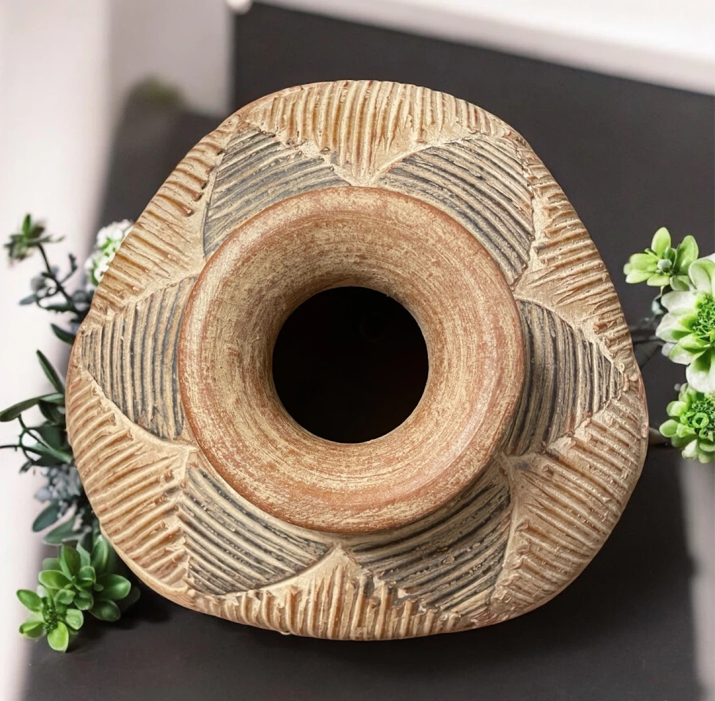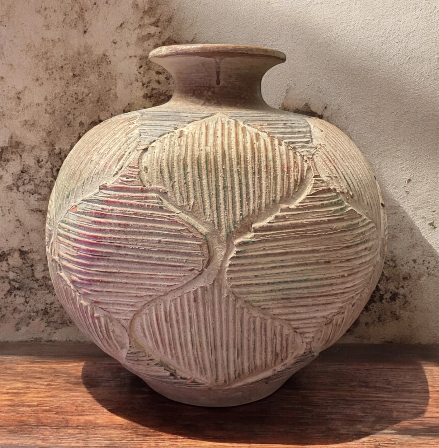 Selling a decorative clay vase in beige with a textured pattern. It's in great condition and would look lovely in any room!
