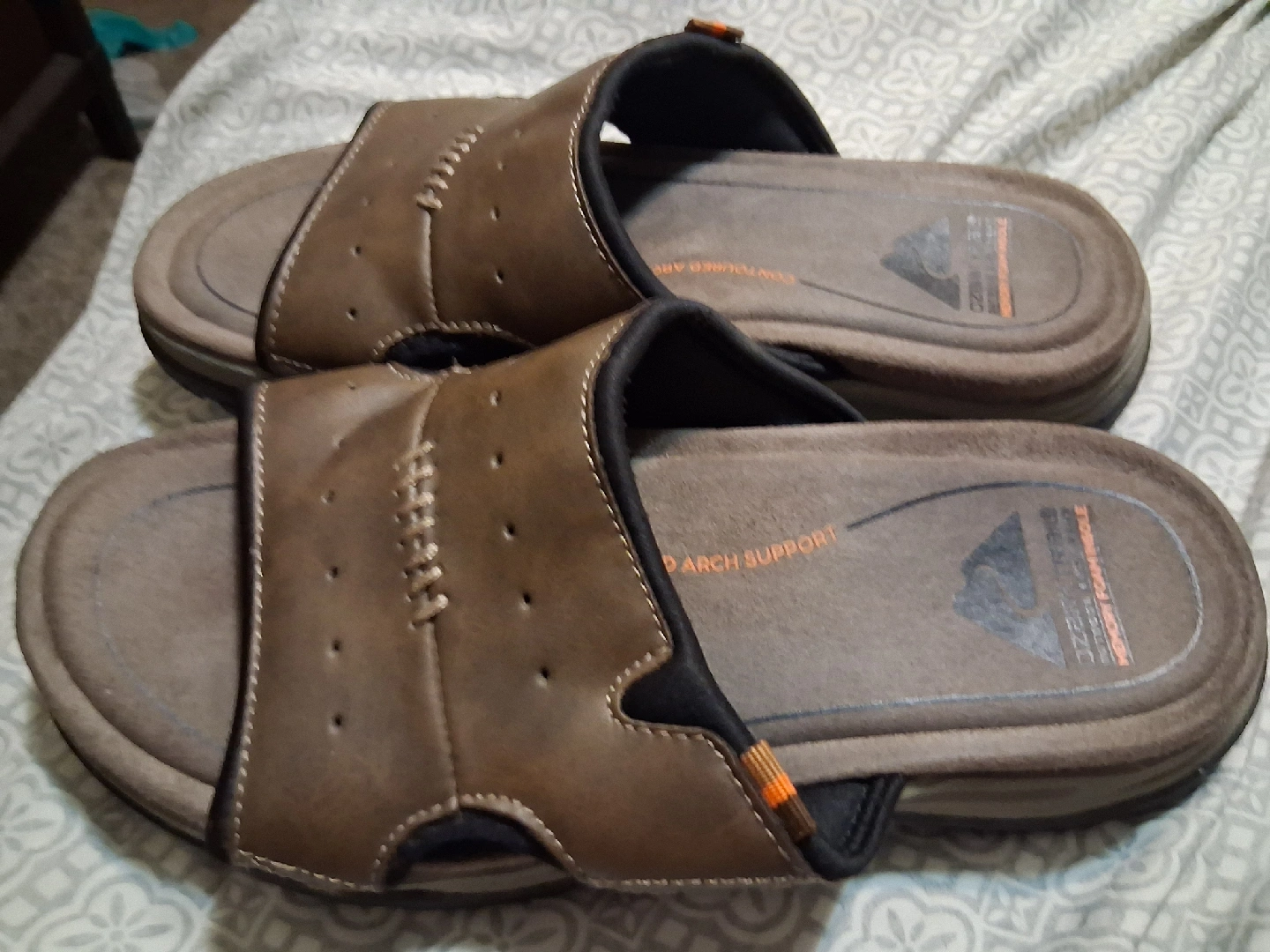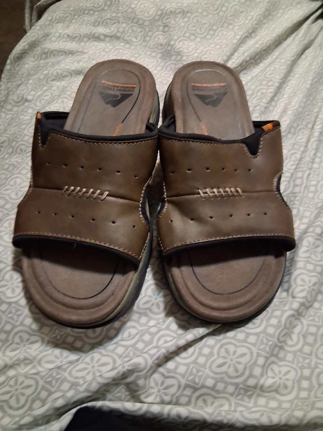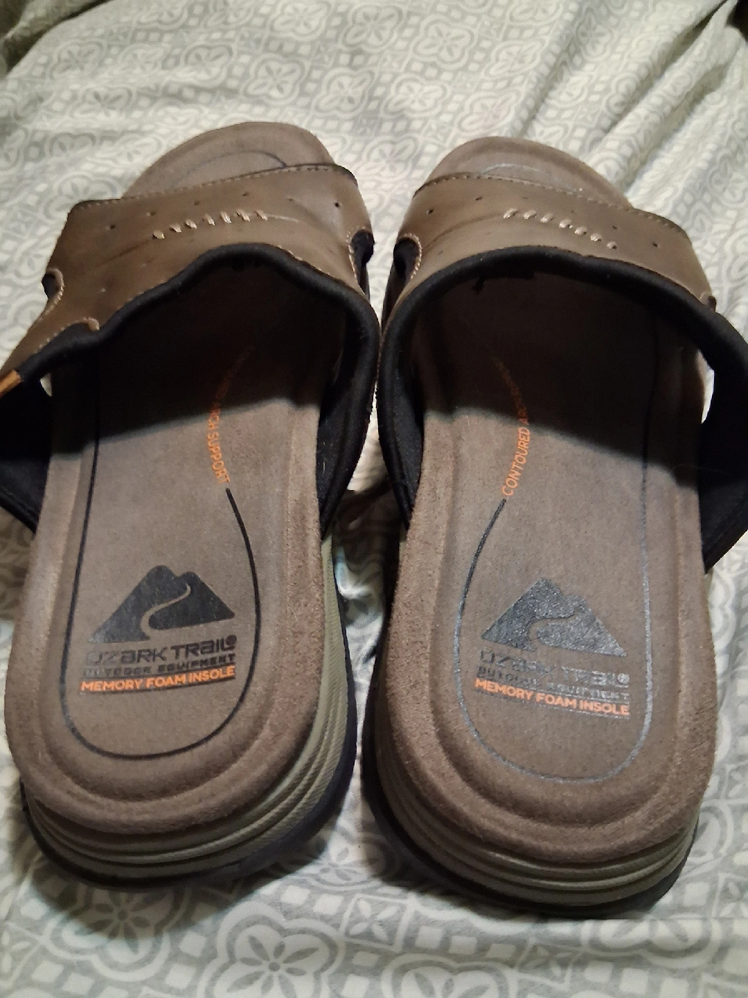 Selling a pair of Ozark Trail sandals with memory foam insoles! They're in good condition and ready for a new home. These sandals feature arch support and contoured insoles for extra comfort.