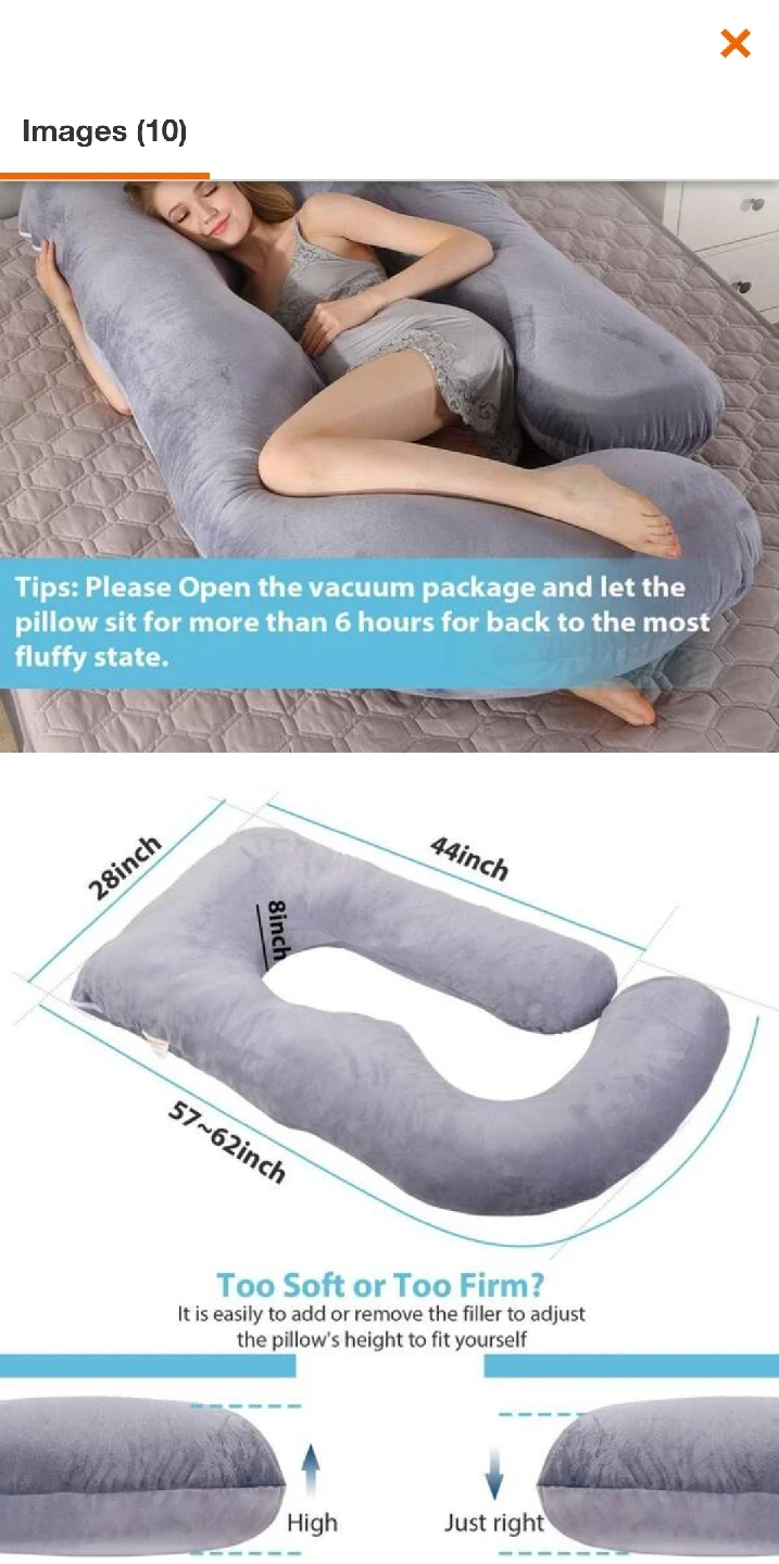 Get comfy with this U-shaped full body pregnancy pillow! It's designed to provide support and comfort during pregnancy.