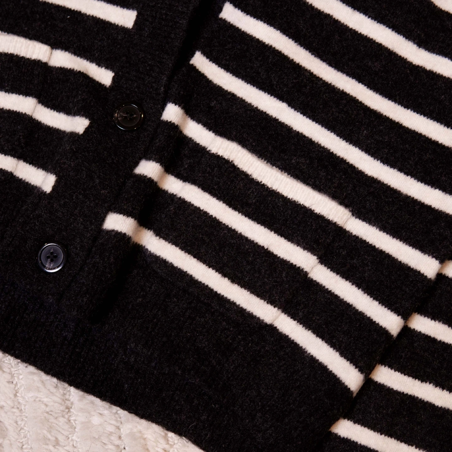 Selling a cute Uniqlo cardigan in size XS. It features a classic black and white striped design. Perfect for layering!