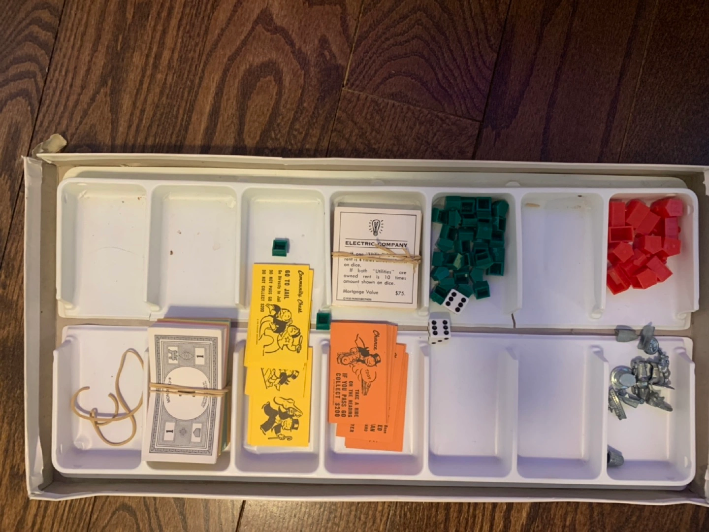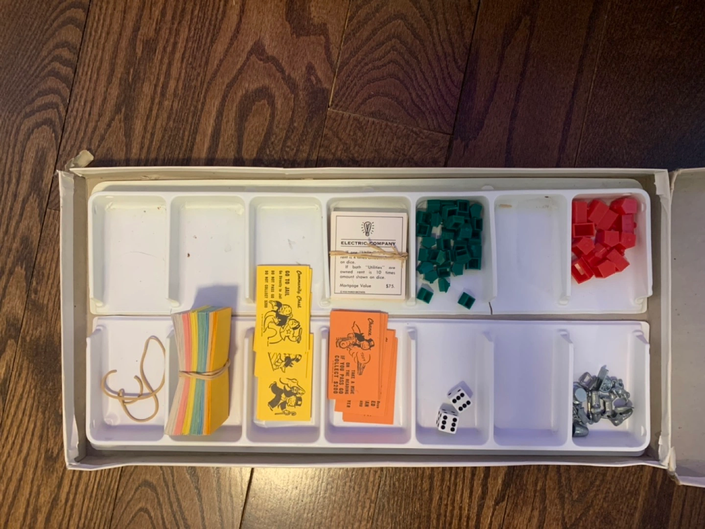 - game complete with all the properties cards, chance & community chest cards, houses and hotels, tokens, dice and money.