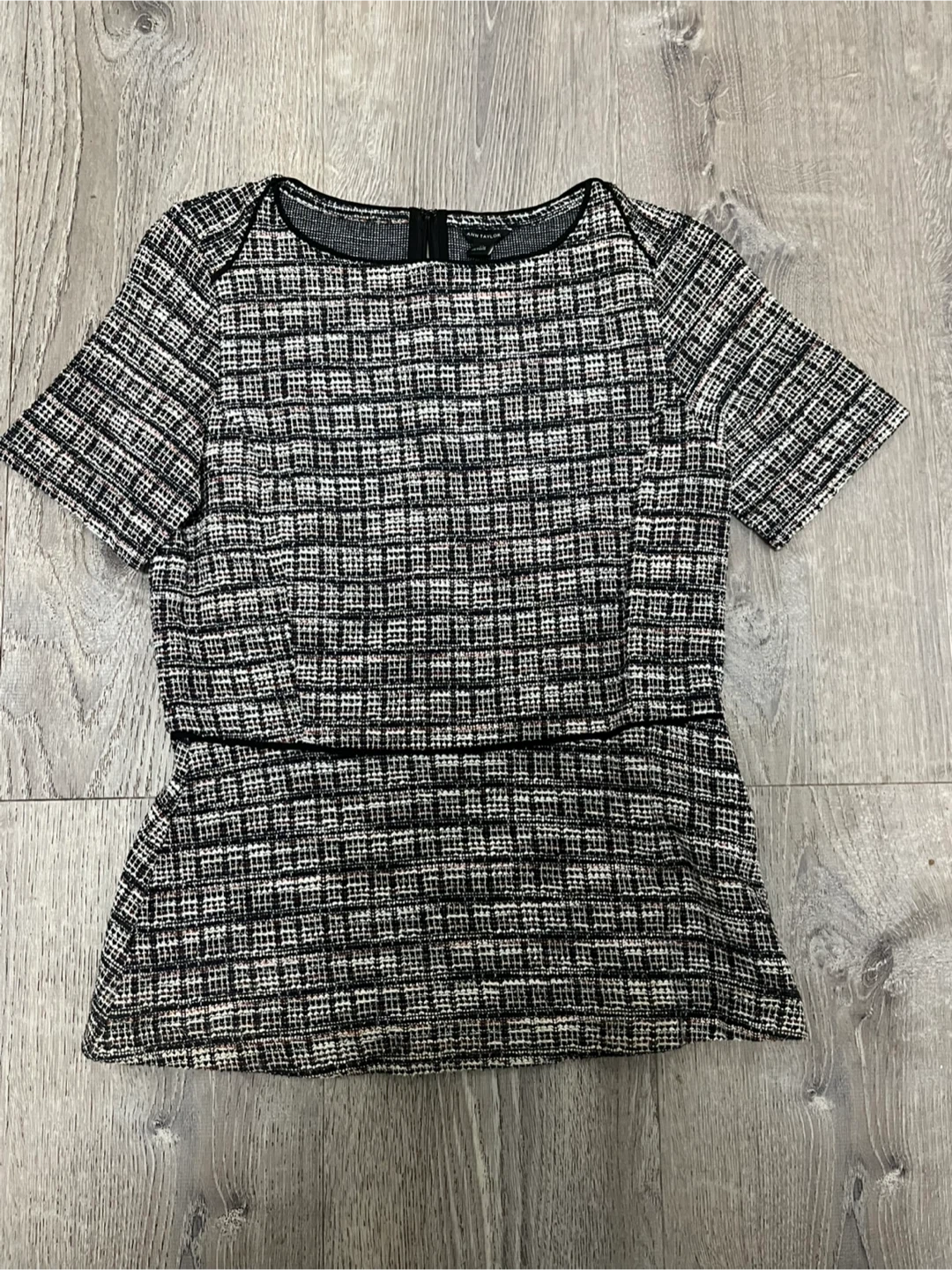 This is a new Ann Taylor plaid peplum top in size XS. It features a stylish plaid pattern. Never worn with tag. Original price $64.50