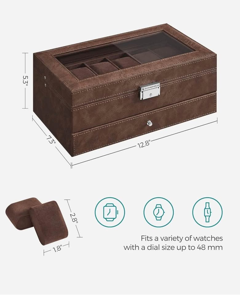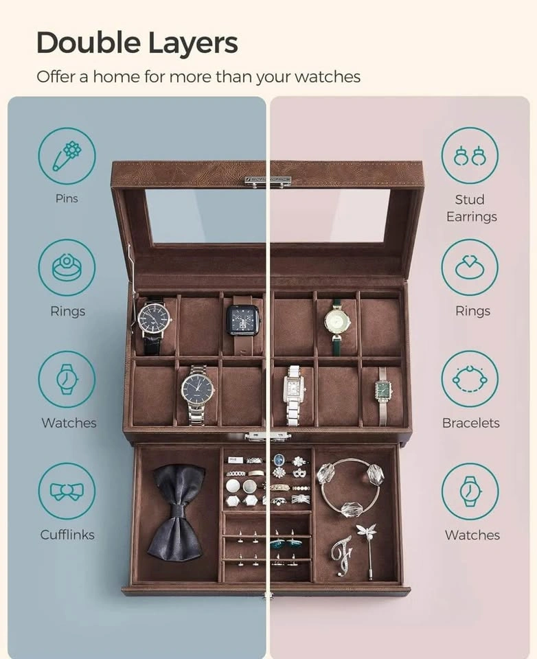 Store and showcase your watch collection in style! This SONGMICS 12-Slot Watch Case Organizer features: