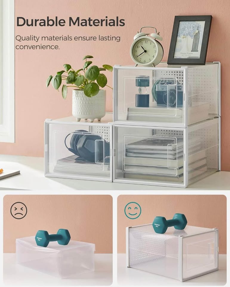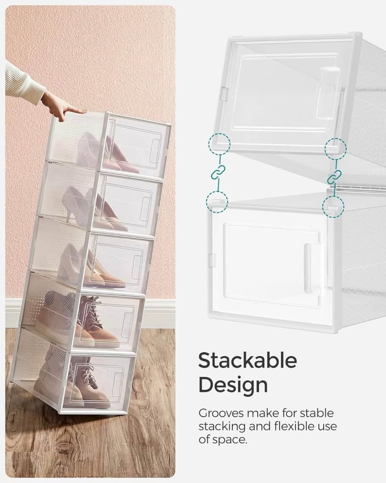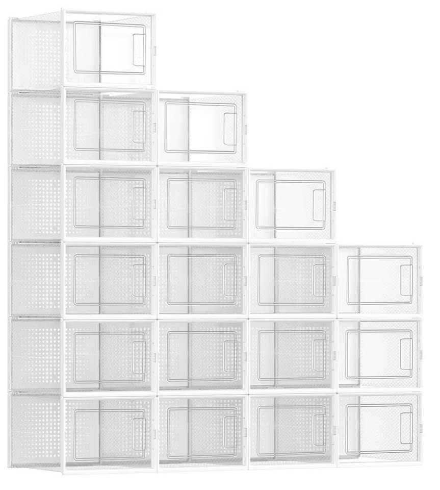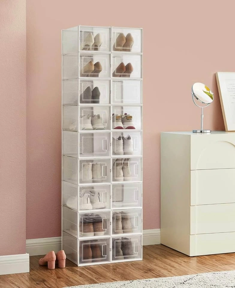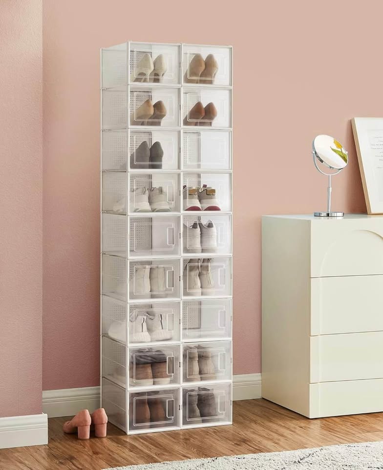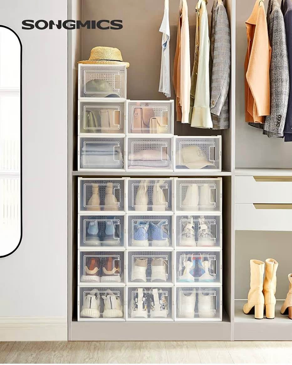 Keep your shoes organized and dust-free with this brand-new SONGMICS set of 18 stackable shoe boxes. Perfect for sneakers, heels, or everyday shoes.