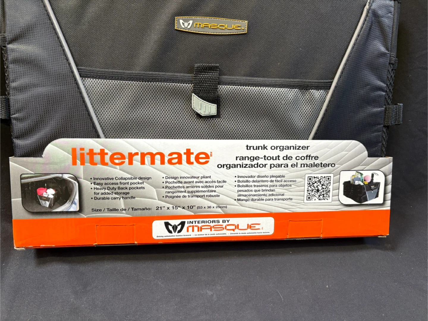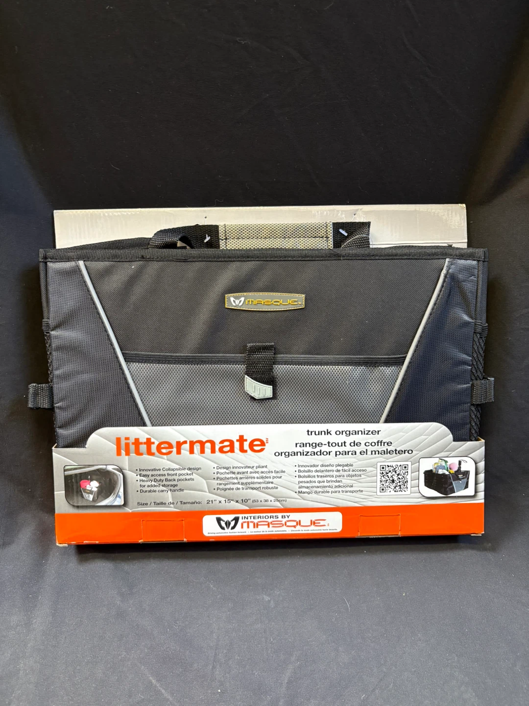 Keep your car trunk tidy with this Masque Littermate trunk organizer! It's brand new in the box and ready to help you stay organized.