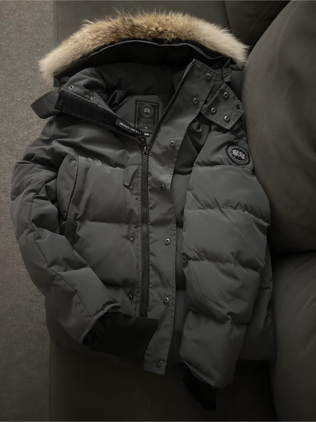Selling a Wyndham Parka Canada Goose down jacket in size L It is in Mint condition and ready for the cold weather! Comes with Dust-bag, tags and receipt