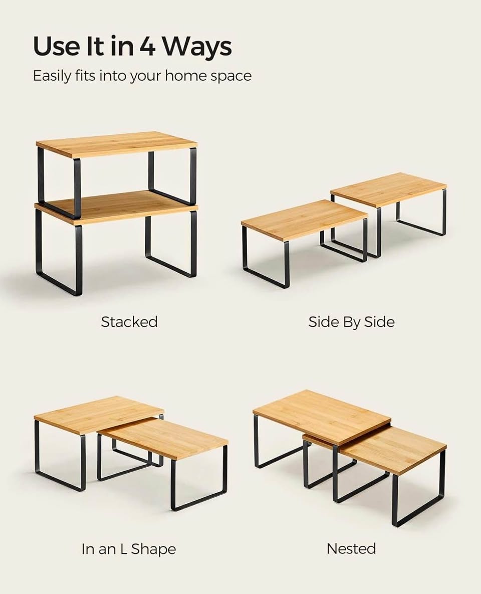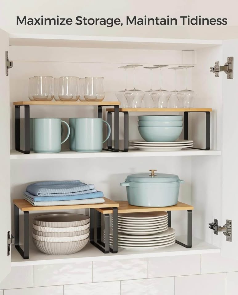 Organize your kitchen or pantry in style with this brand new set of 2 SONGMICS Cabinet Organizer Shelves!