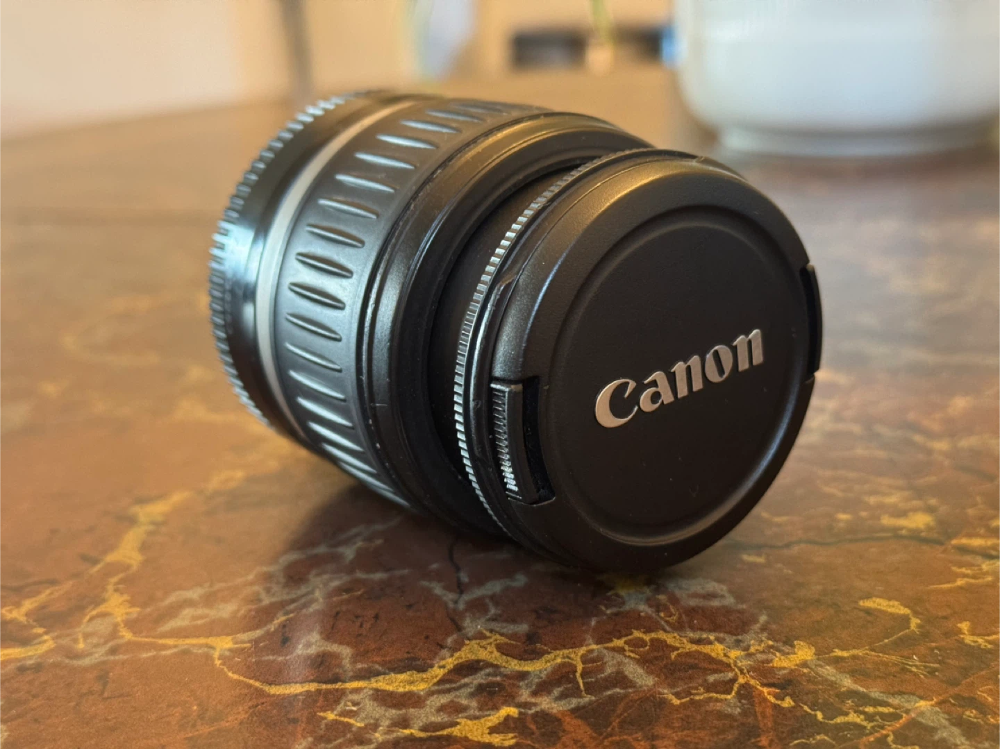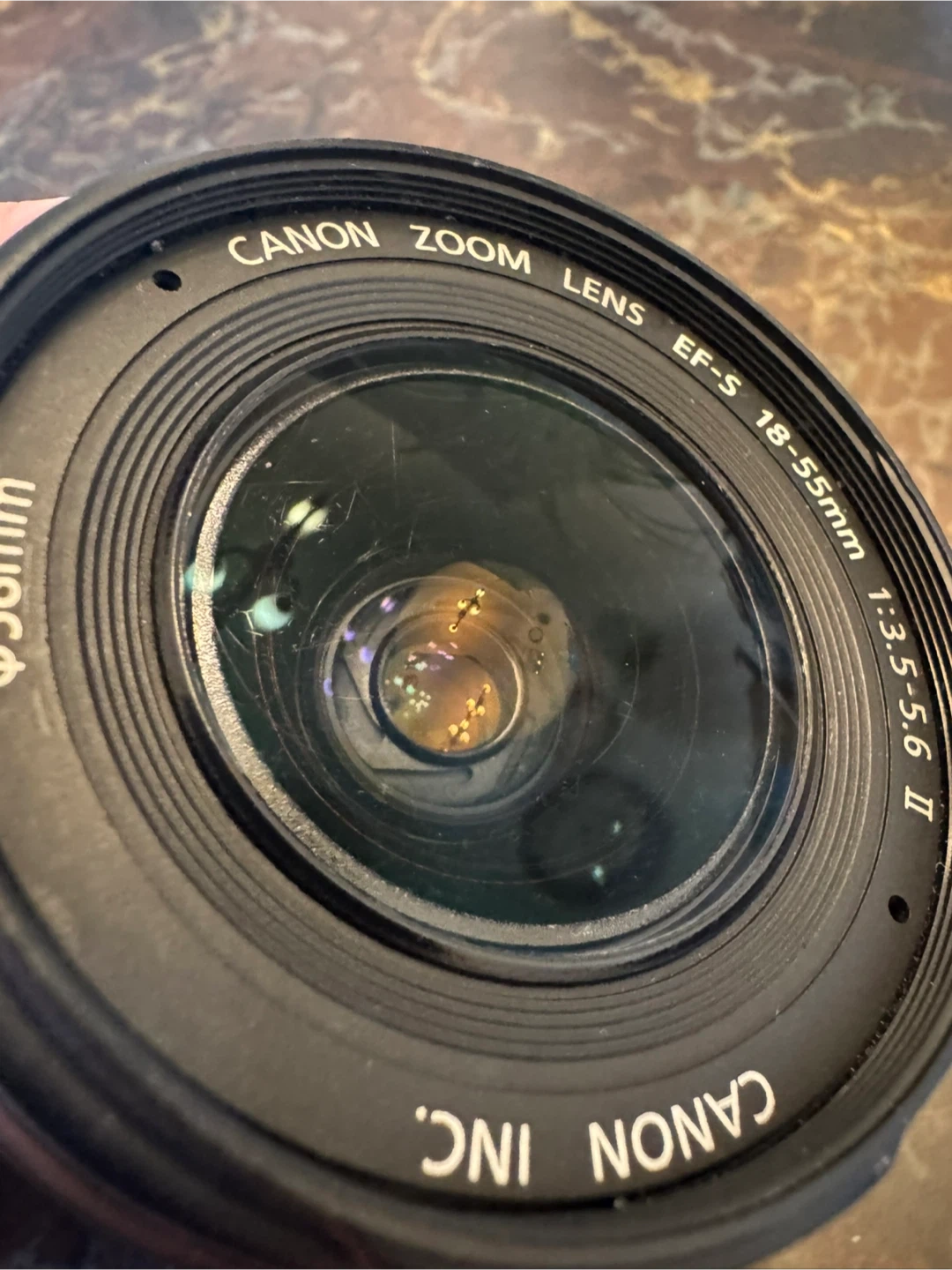 The camera body comes with a Canon Zoom EF-S 18-55mm 1:3.5-5.6 II Lens, a standard battery, a third-party charger, an 8GB memory card, a mini-tripod, and the manual.