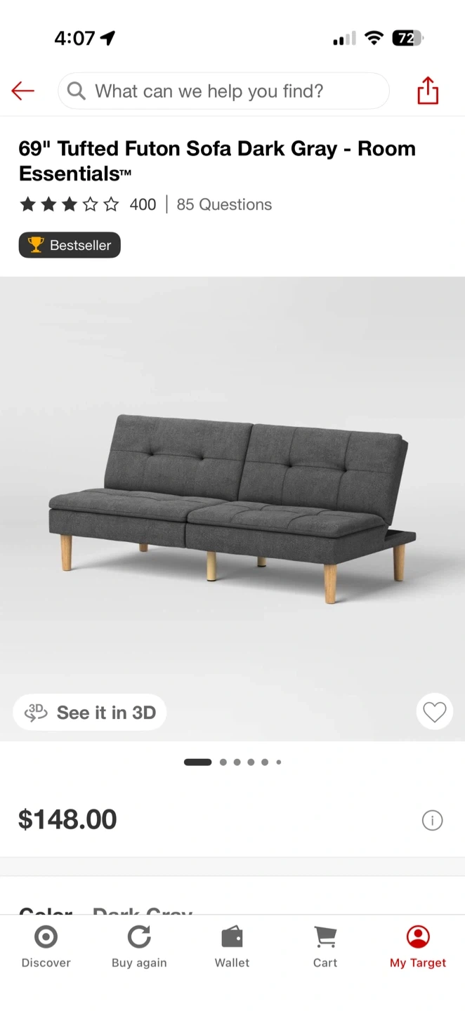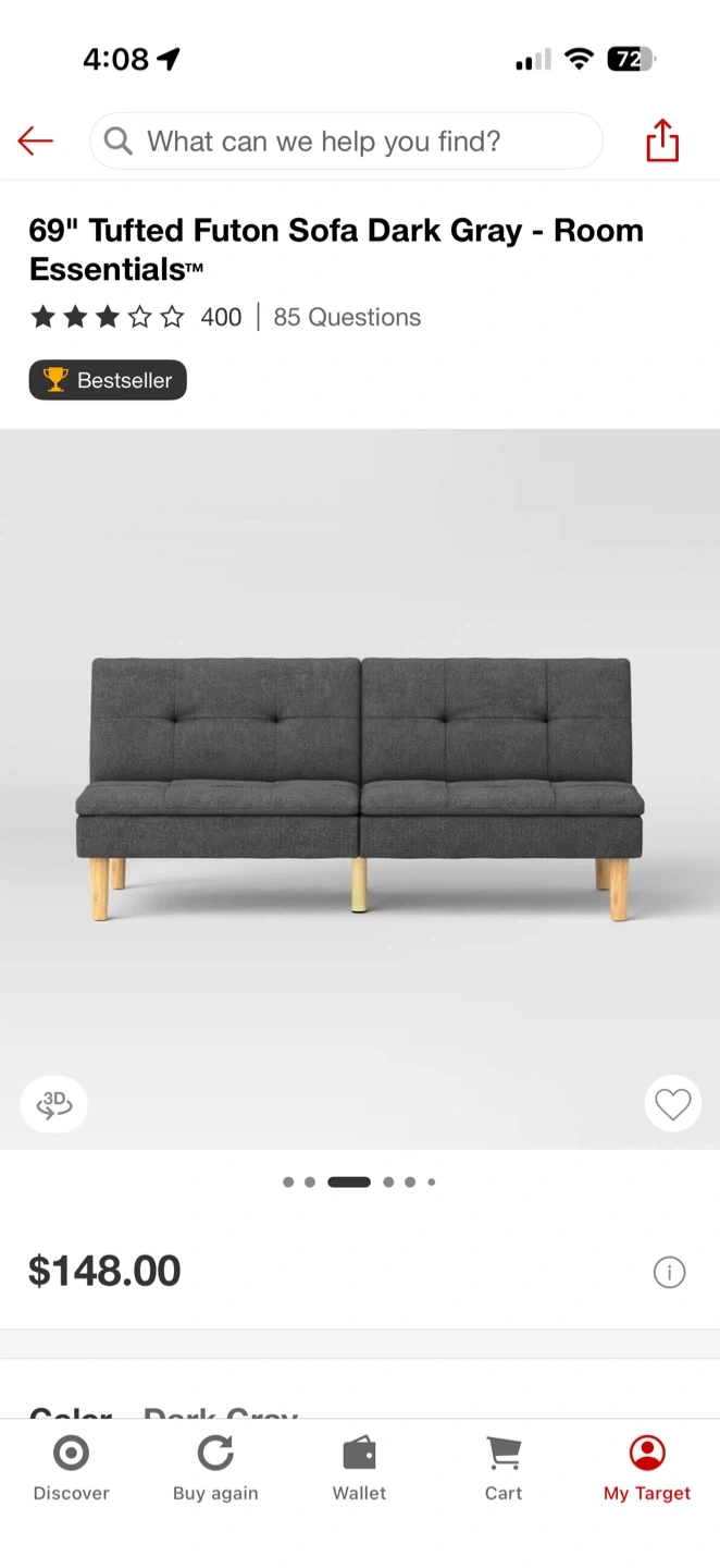 Selling an extra Target Room Essentials futon as shown in the pictures in brand new sealed condition. Ordered 2 accidentally but kept one and selling the other one that is ready for pickup. Please see the one I kept for how it looks like.