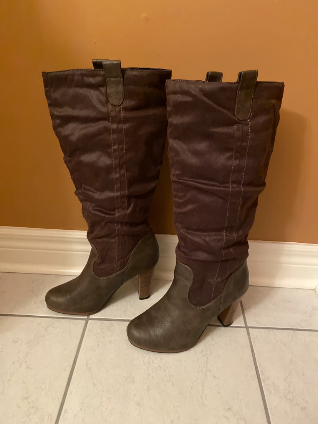 These brown heeled boots are in great condition and ready for a new home! They're a stylish addition to any wardrobe and perfect for fall or winter