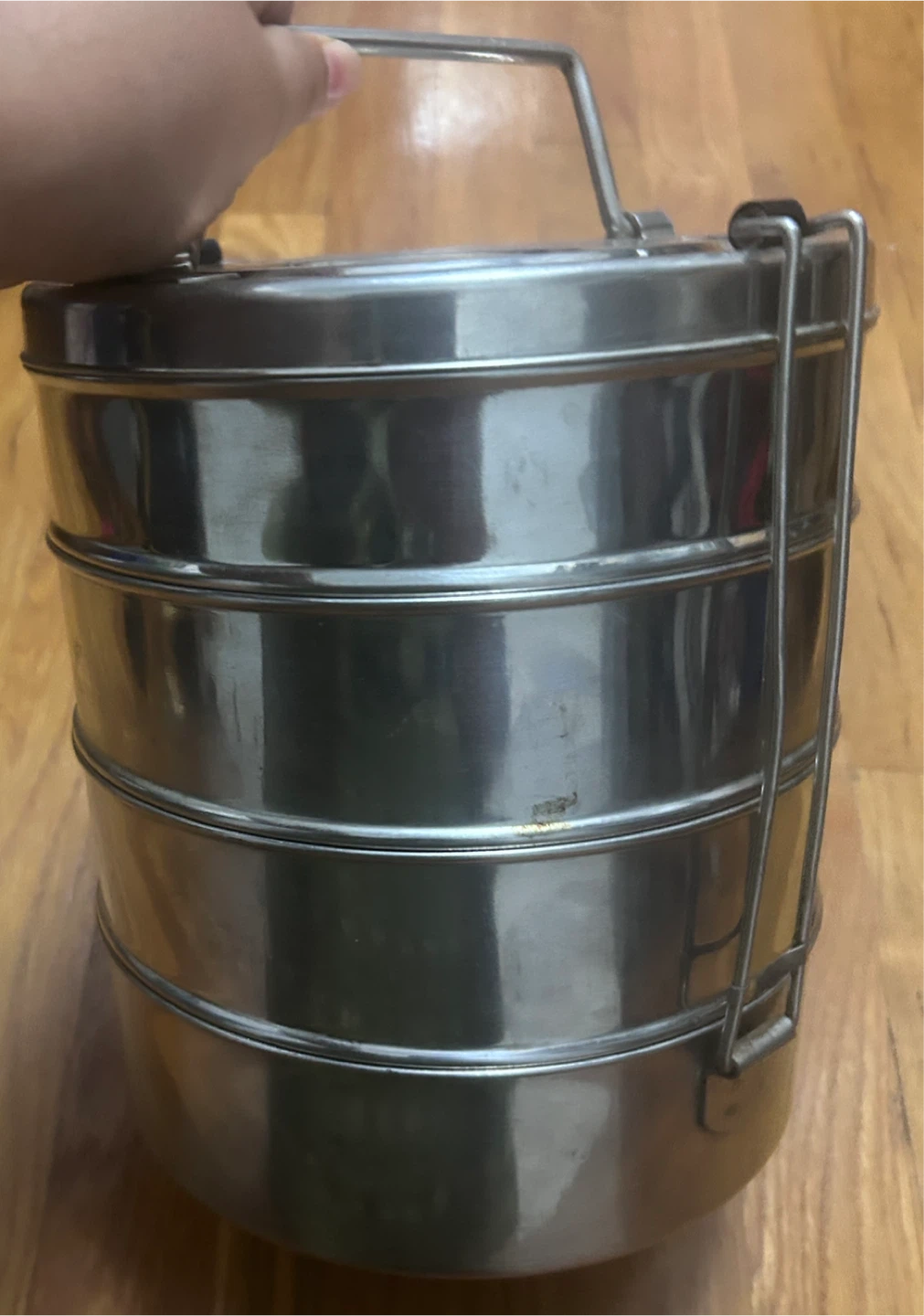 Selling a stainless steel tiffin lunch box! It has multiple tiers for separating different foods. Perfect for taking lunch to work or school.