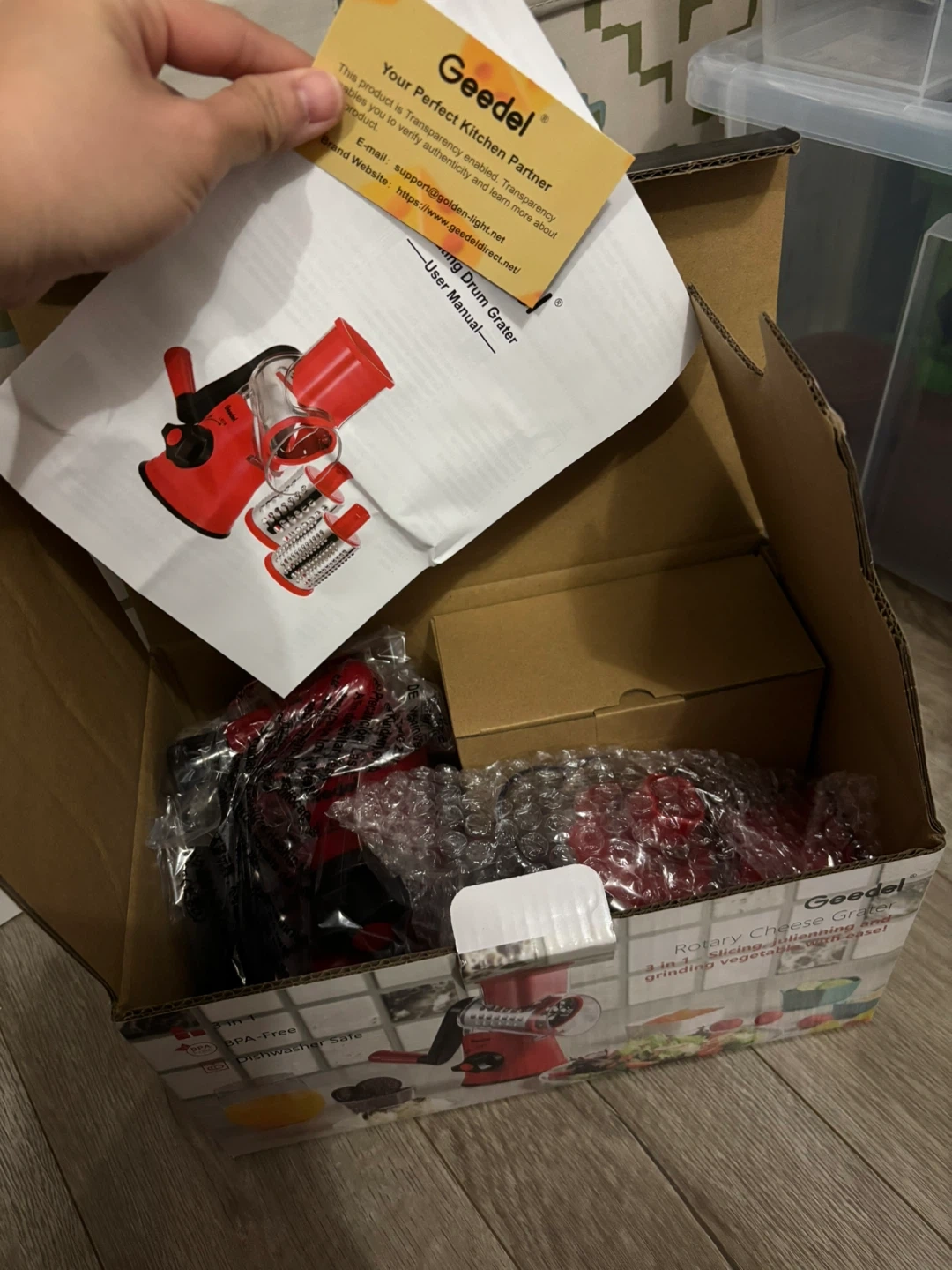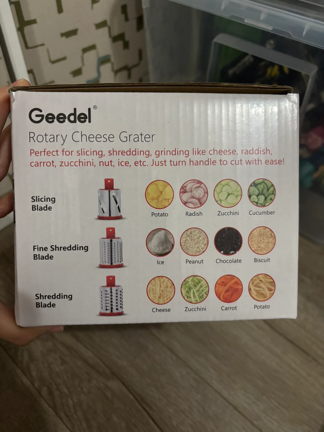 I'm selling a brand new Geedel Rotary Cheese Grater, still in its original box.