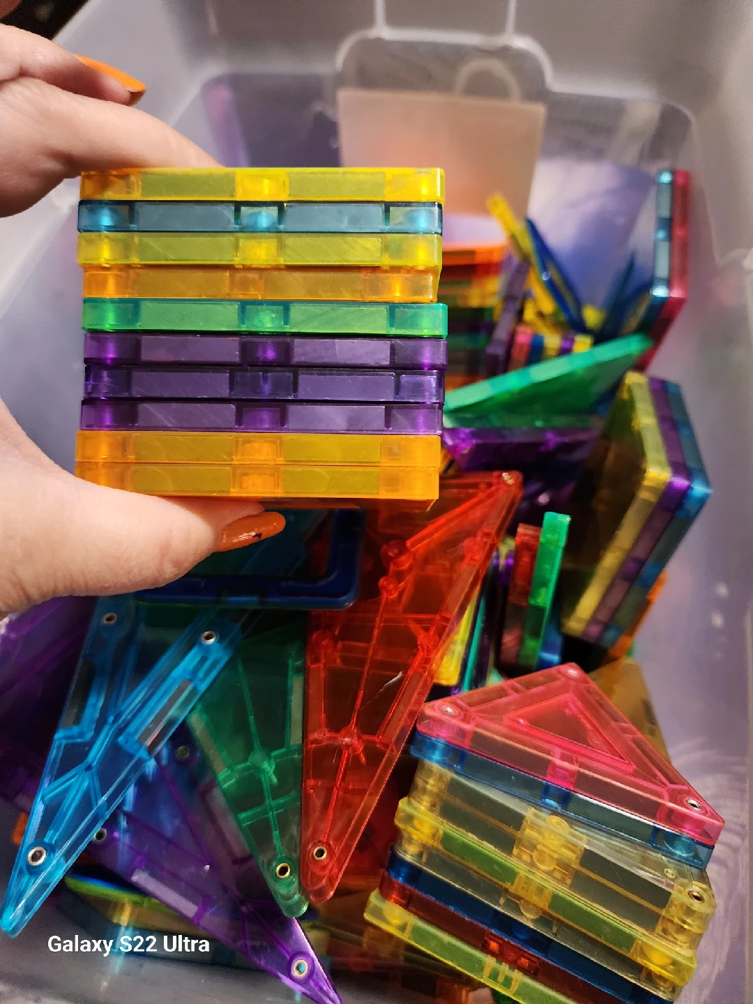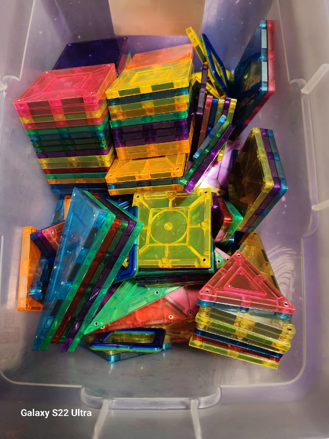 Selling a set of Magna-Tiles! These are great for creative play and building all sorts of structures. They're in good condition and ready for a new home.. comes with the plastic tote!