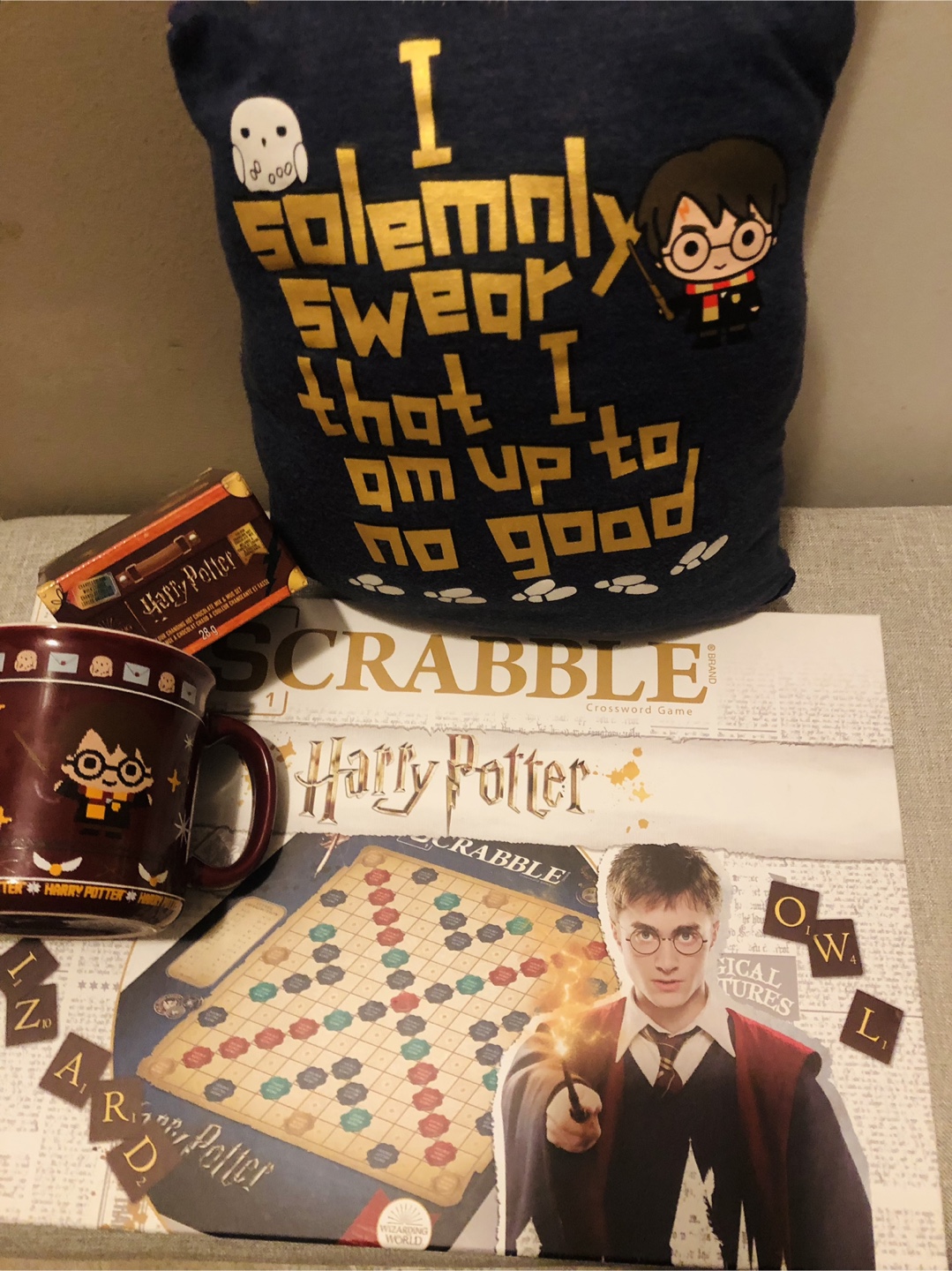 🌟FREE✨🦉🧹 🛌Harry Potter Pillow ***Check out my other Ad which includes a scrabble game and a matching mug! With Hot Chocolate 🍫 ☕️ fun collectibles for any Potterhead