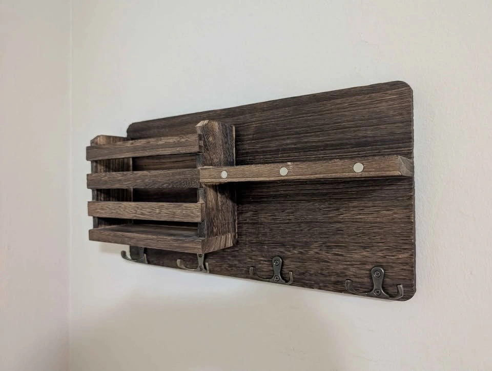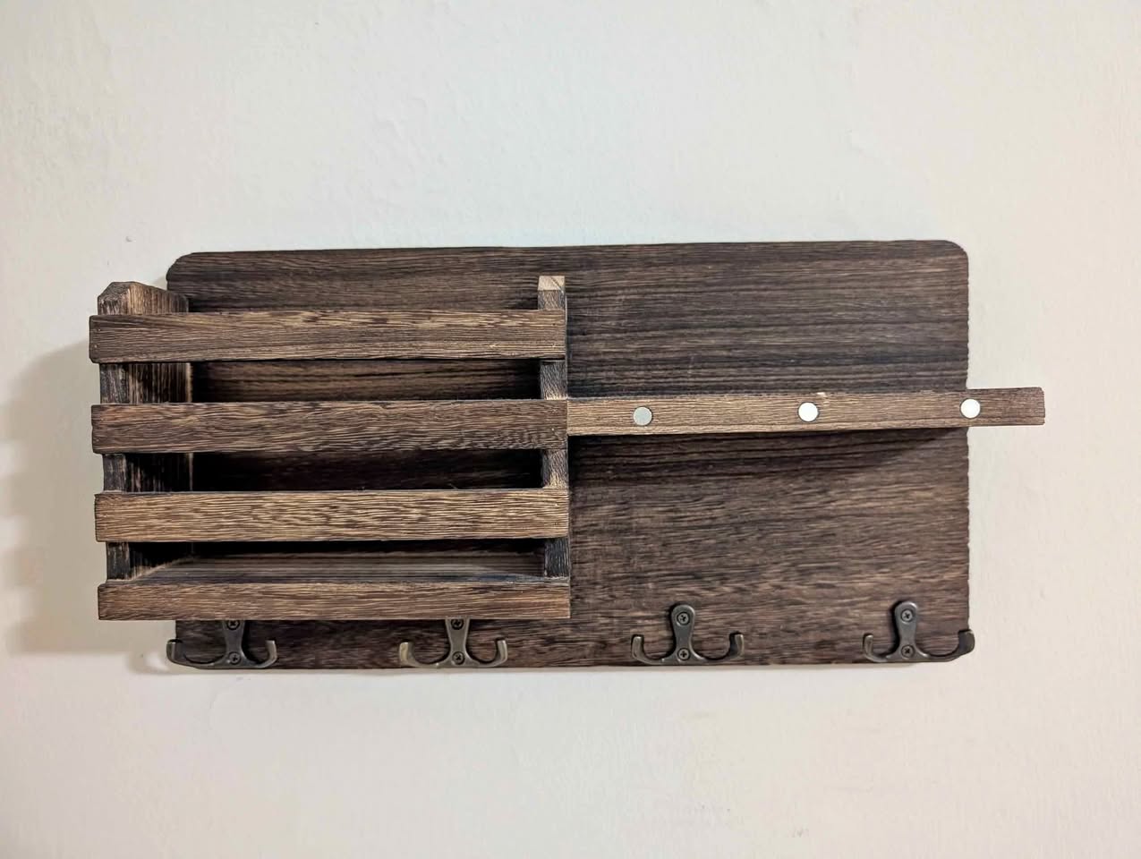 Key and Mail Holder with 4 double key hooks and 3 magnet key holders