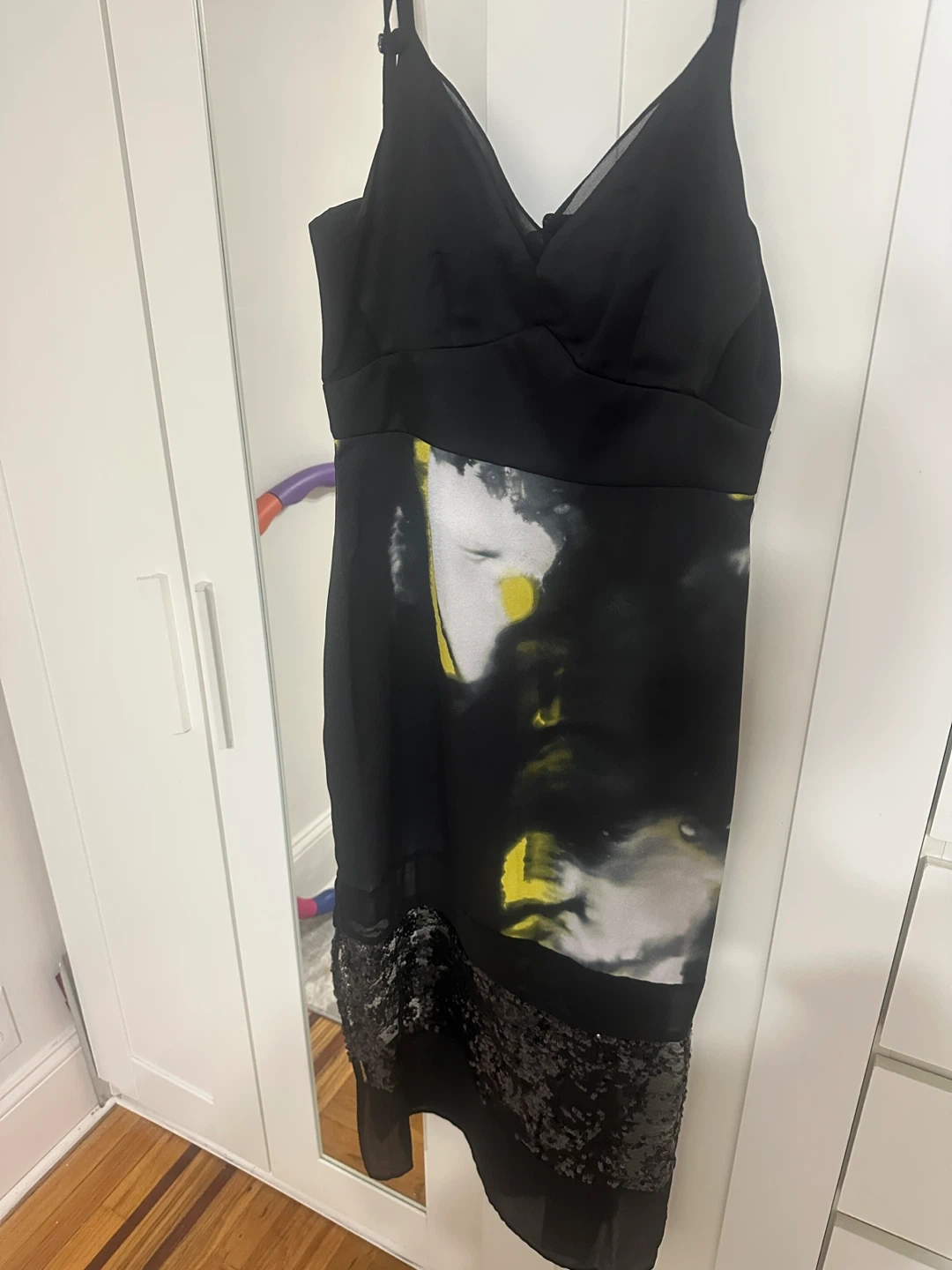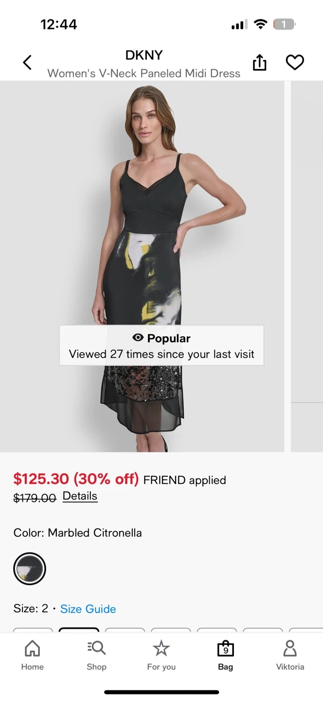 Selling a DKNY V-Neck Paneled Midi Dress! It's a size 2 and features a unique marbled citronella color pattern. This dress originally retailed for $179.00