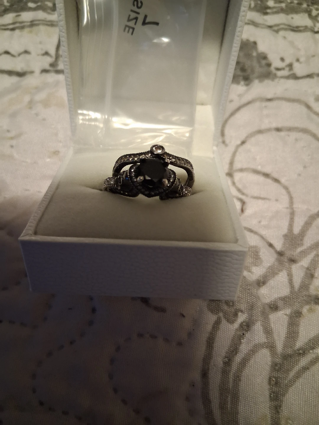 Selling a lovely black stone ring in size L. It comes in a box, perfect for gifting or keeping it safe. The ring has a unique design and is in great condition..came from Julia in the US..