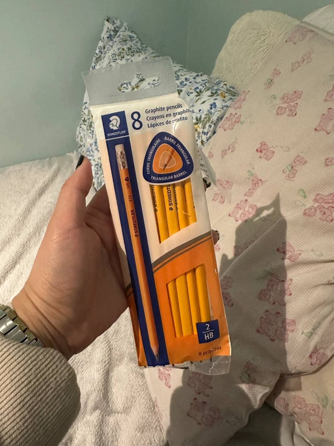 Selling a pack of 8 Staedtler graphite pencils! They are HB 2 pencils with a triangular barrel for a comfortable grip. Perfect for school, work, or just doodling!