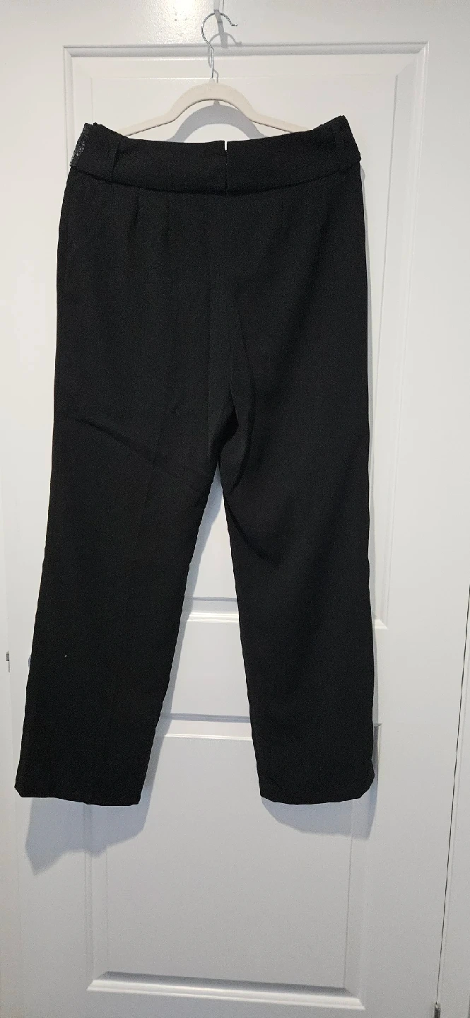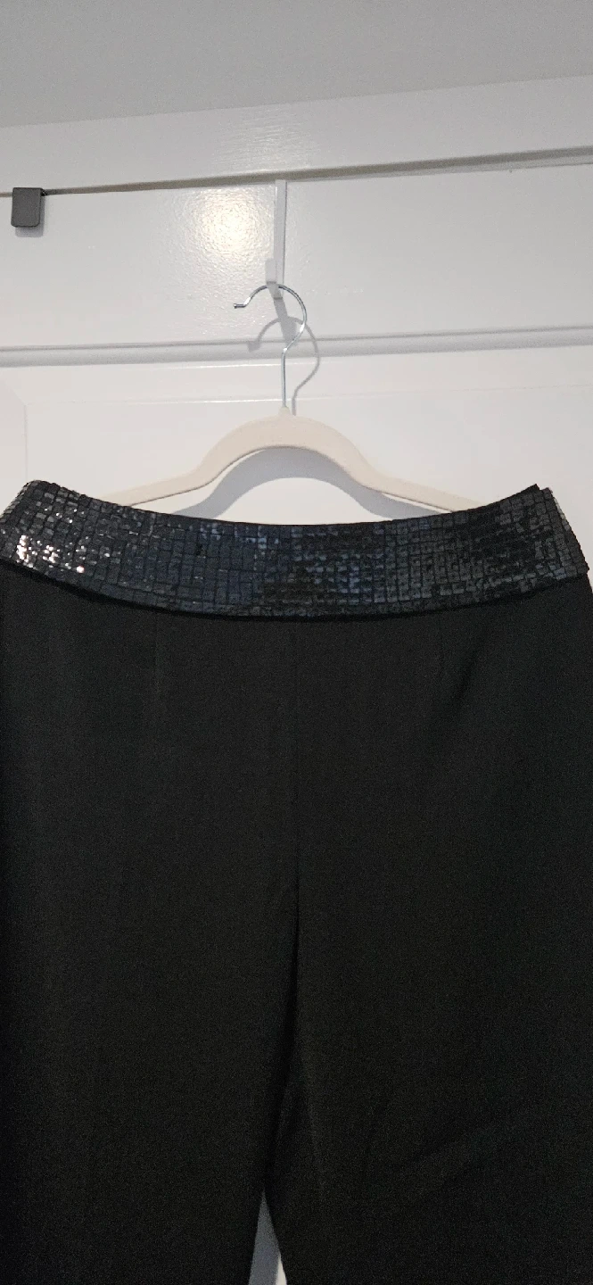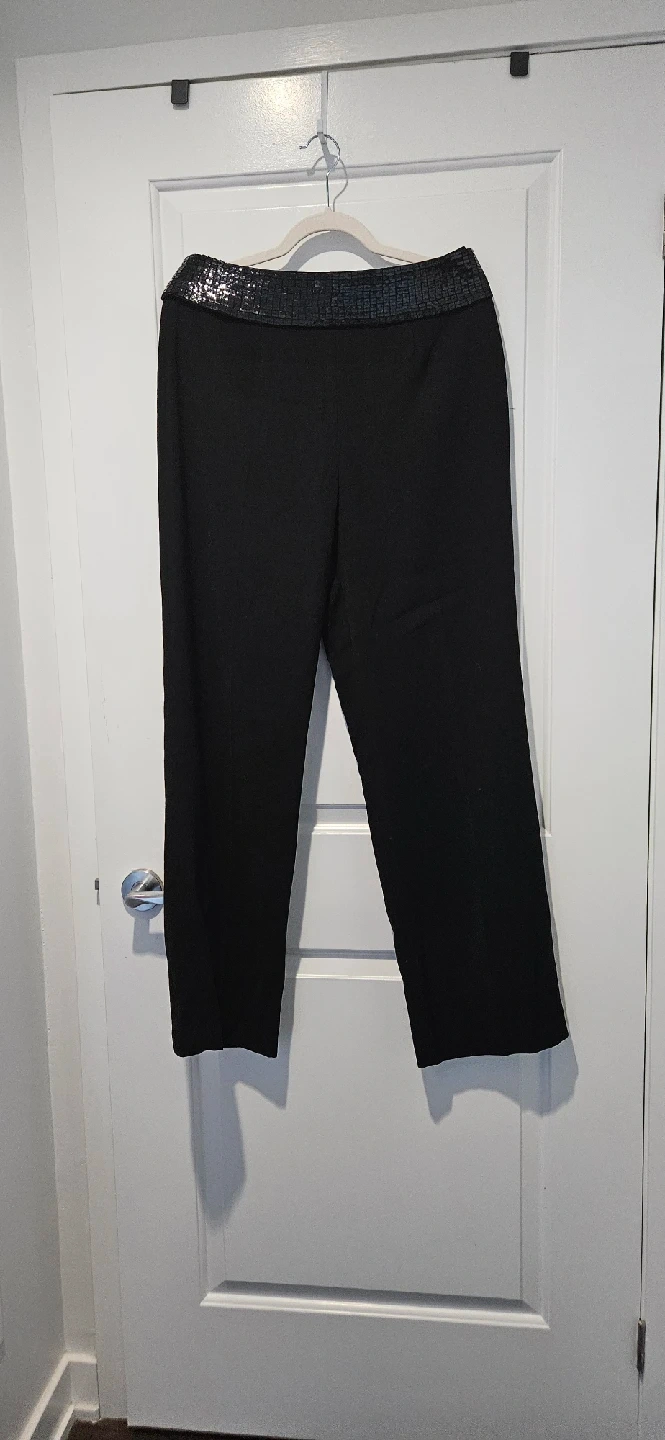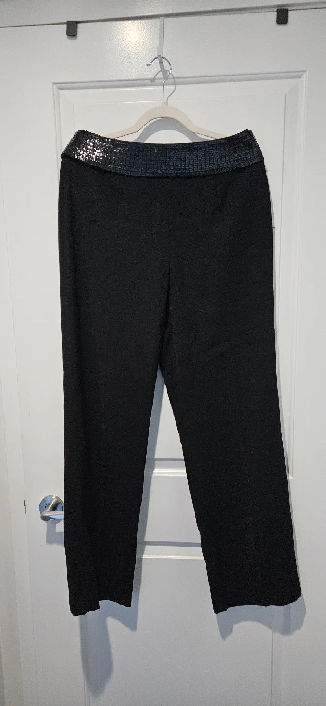 Selling a pair of black dress pants by Together brand (vintage). They feature a stylish removable sequin waistband, adding a touch of sparkle to your outfit. These pants are perfect for a night out or any special occasion!