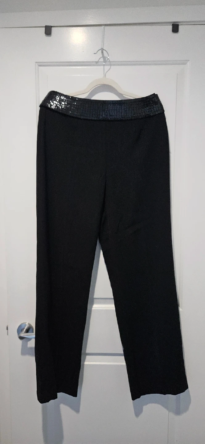 Black Dress Pants with removable Sequin Waistband, Size 10 to 12