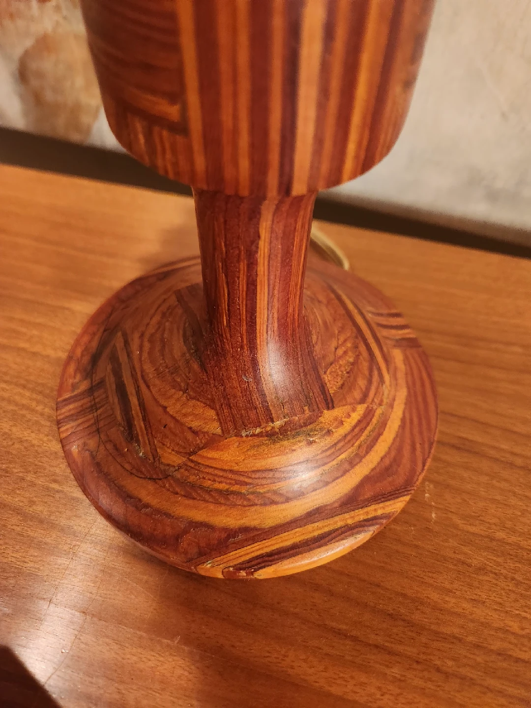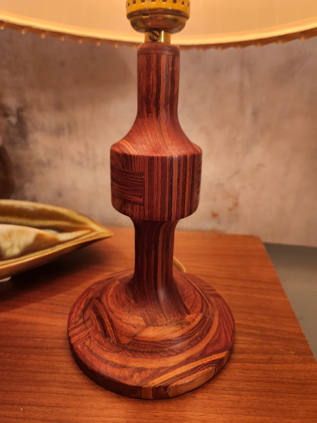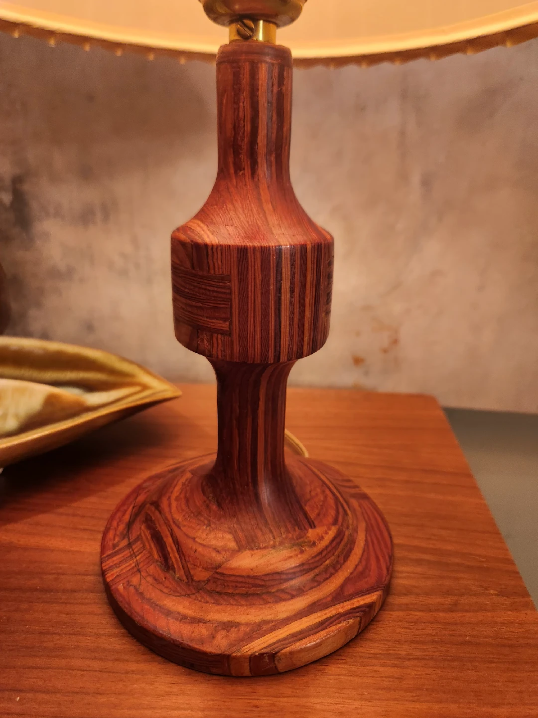 Selling a charming mid-century modern table lamp with a beautiful wood base and pleated lampshade. It would be a great addition to any room! 16 inches high