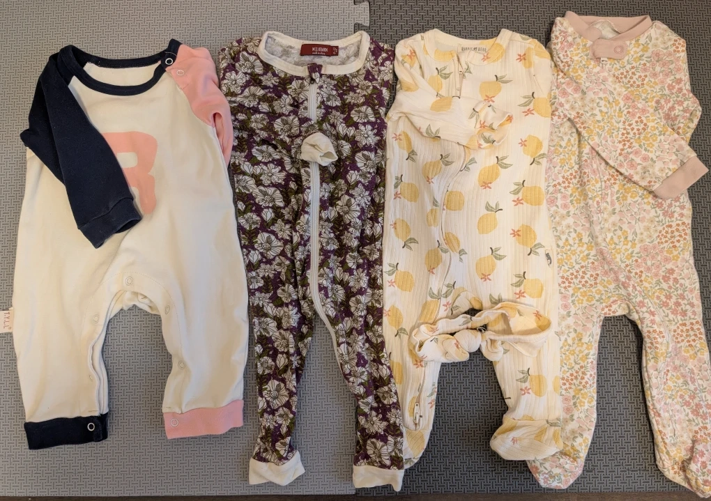 71All in excellent condition, no rips or stains. For 6-9 months (one says 9-12 months but fit is small). The dark one is Milkbarn (100% bamboo) and one is Rabbit + Bear (organic cotton) with matching headband. All for $10. Pick up at Dufferin and Rutherford.