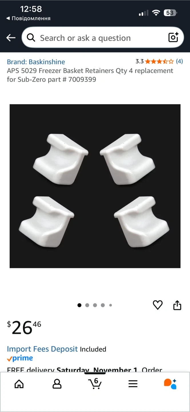 Selling a set of Baskinshine APS 5029 freezer basket retainers. These are a replacement part for Sub-Zero, part # 7009399. Originally bought for $26.46.