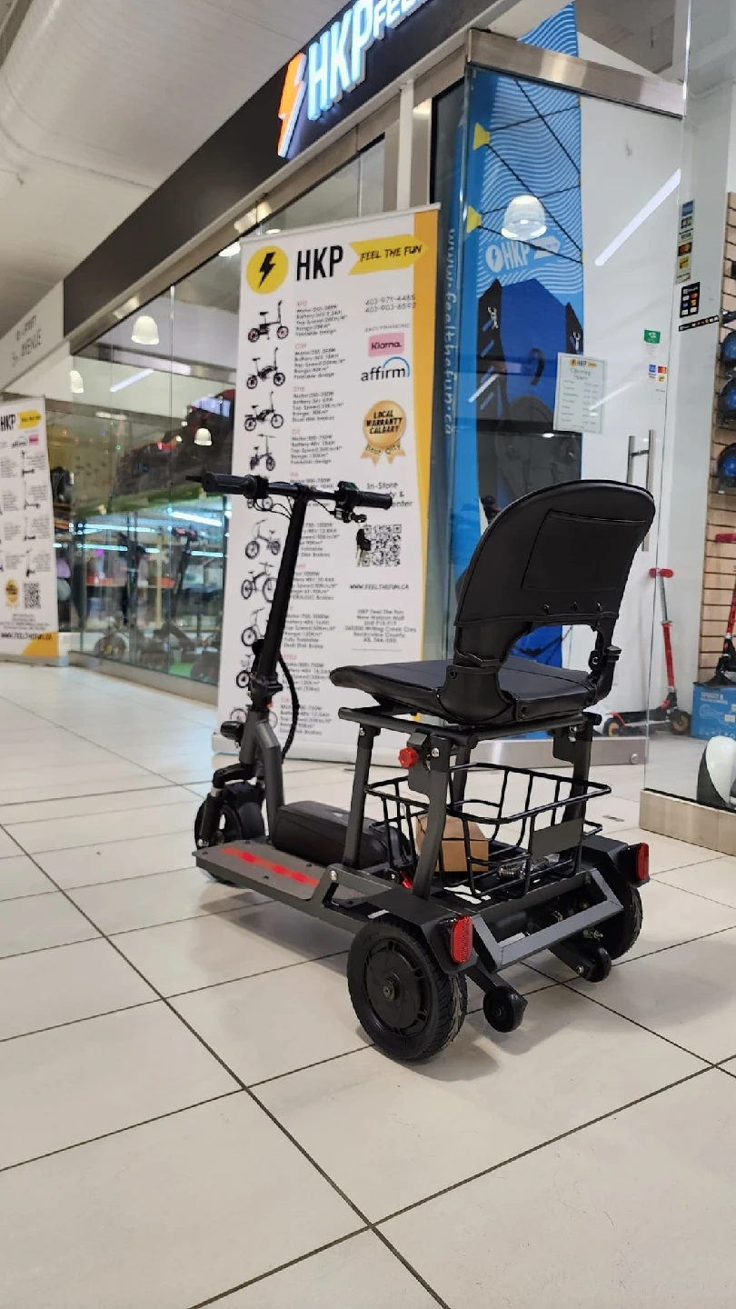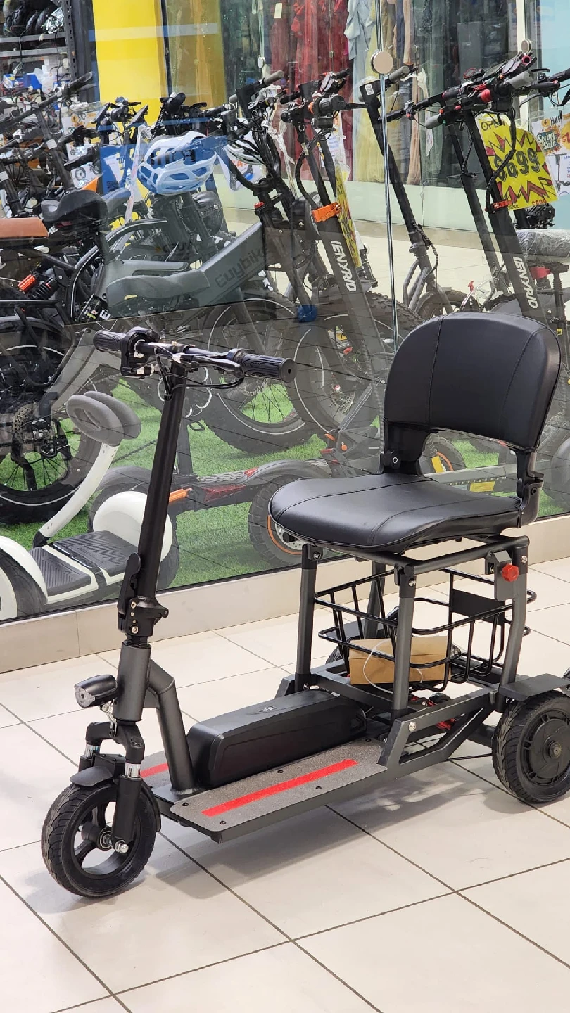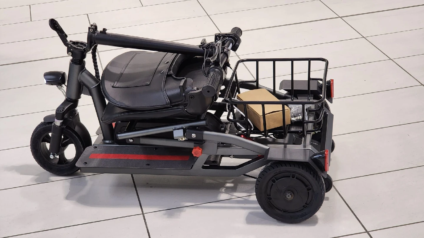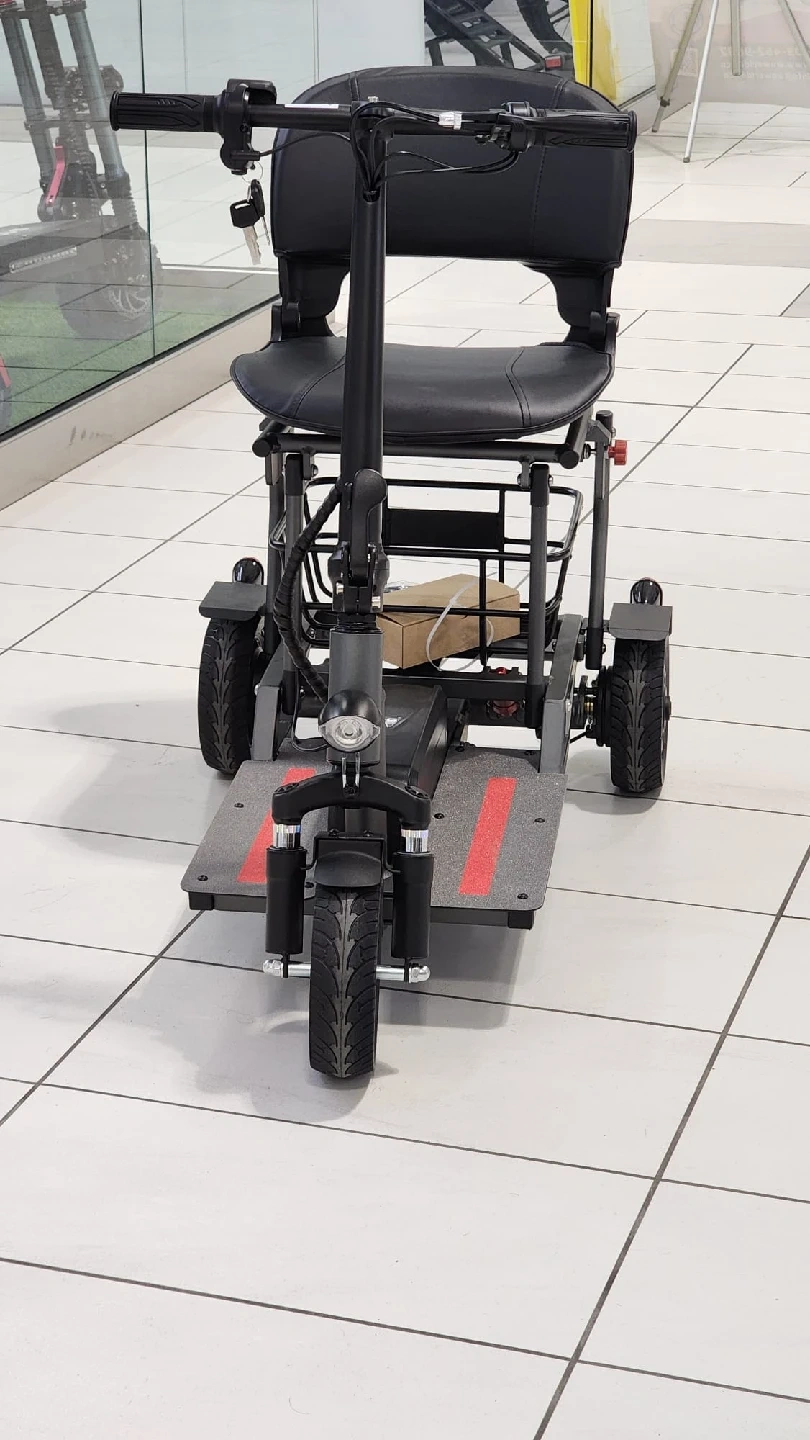 Selling a foldable electric mobility scooter! It's super convenient for getting around. The scooter features a comfortable seat, a basket for carrying items, and a foldable design for easy storage and transport