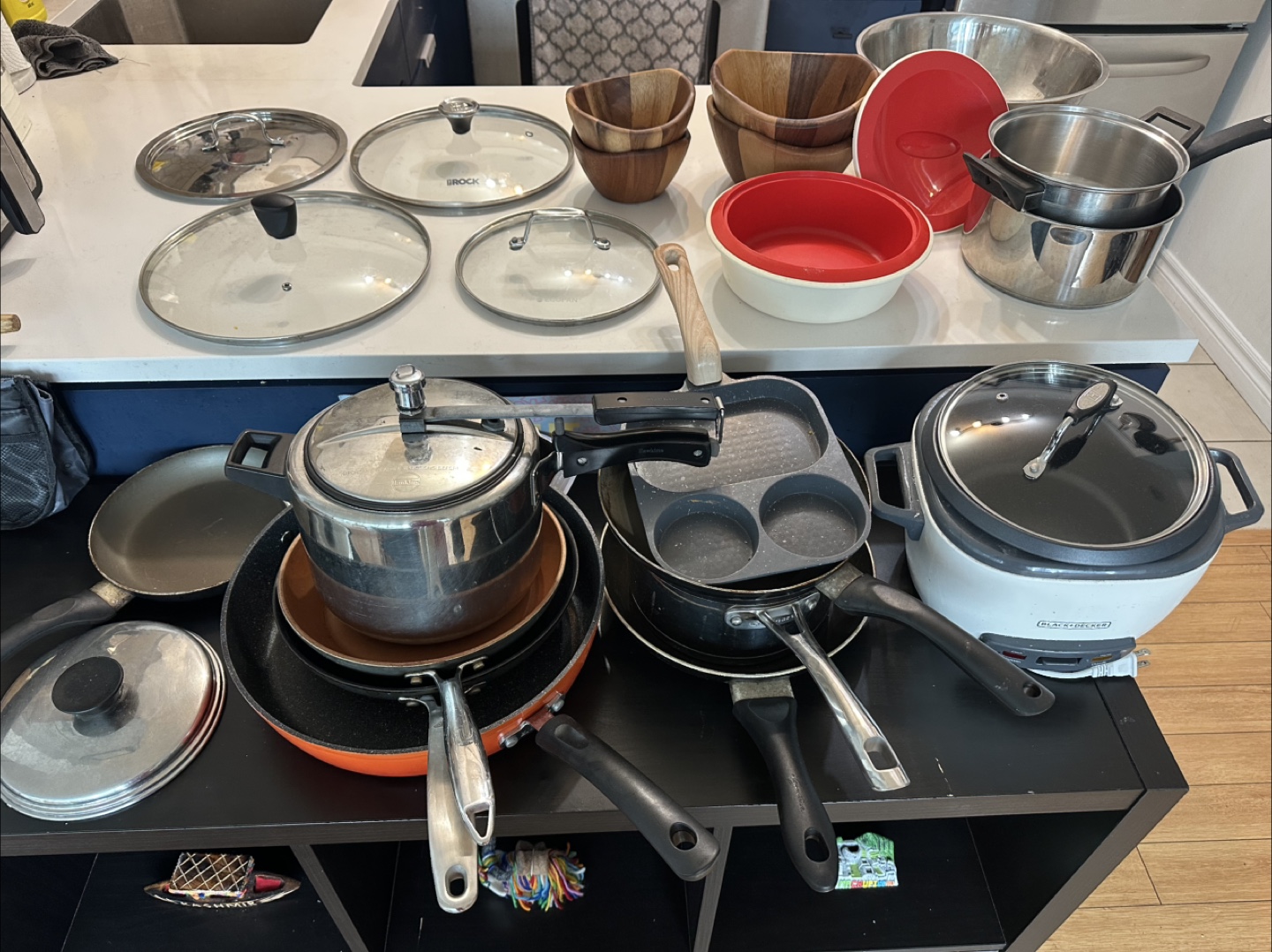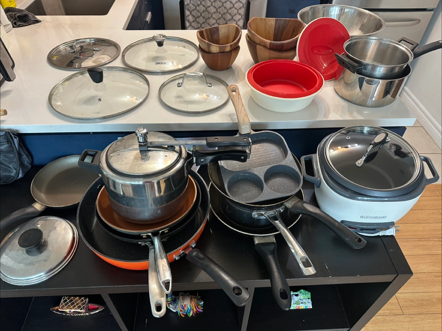 Selling a variety of used kitchenware. Includes pots, pans, lids, and bowls. Some items show signs of use, but are still functional. Perfect for someone starting out or needing extra pieces! 5$ per bowl, individual prices or buy everything at a bulk discount price 🤗