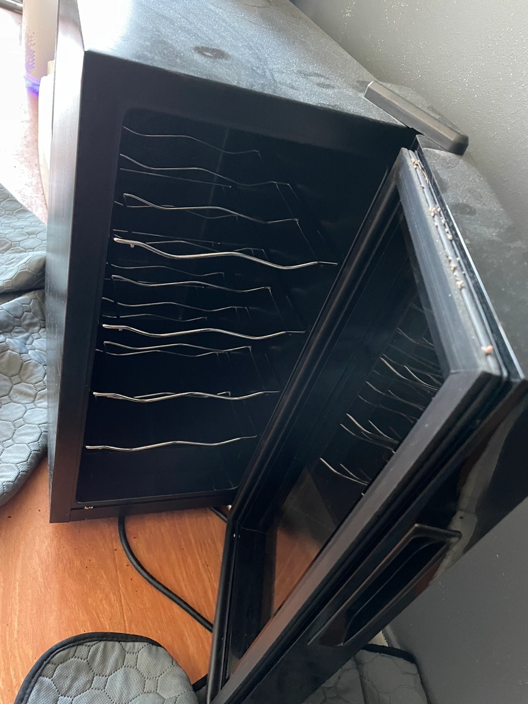 Re posting after being off app this winter. Doing spring clean and purge. Bought during COVId do not use anymore excellent condition requires plug if would like to use for chilling wines has temperature control and inside light. Can also be used unplugged to store. Can share dimensions. Can arrange for it to be dropped off depending on location.