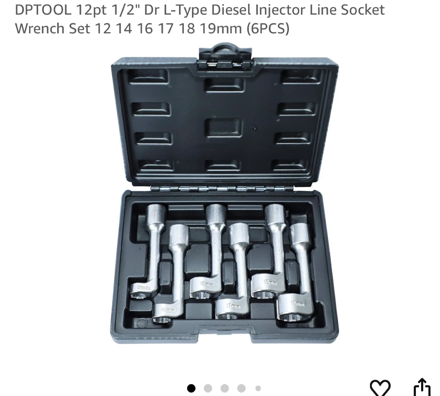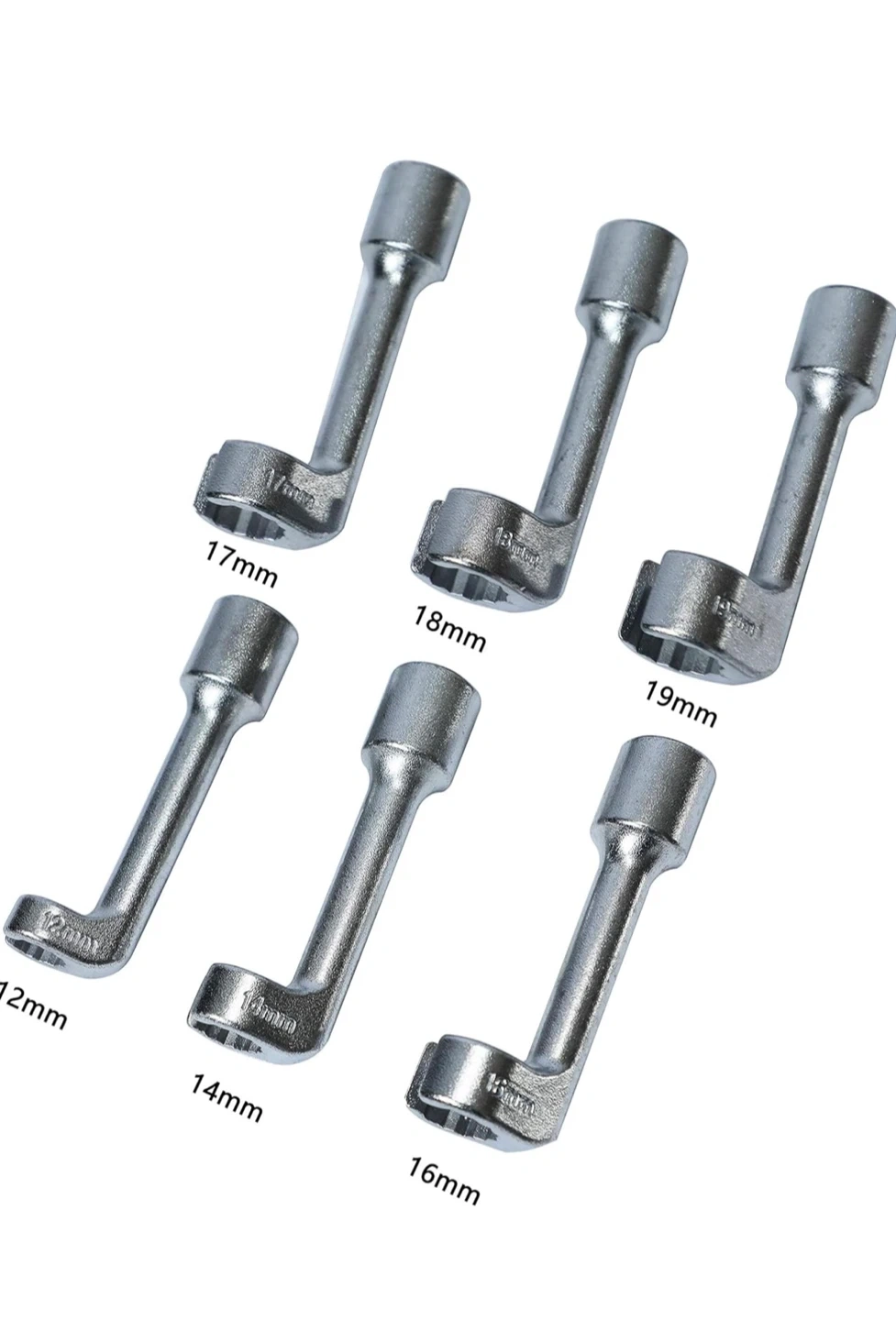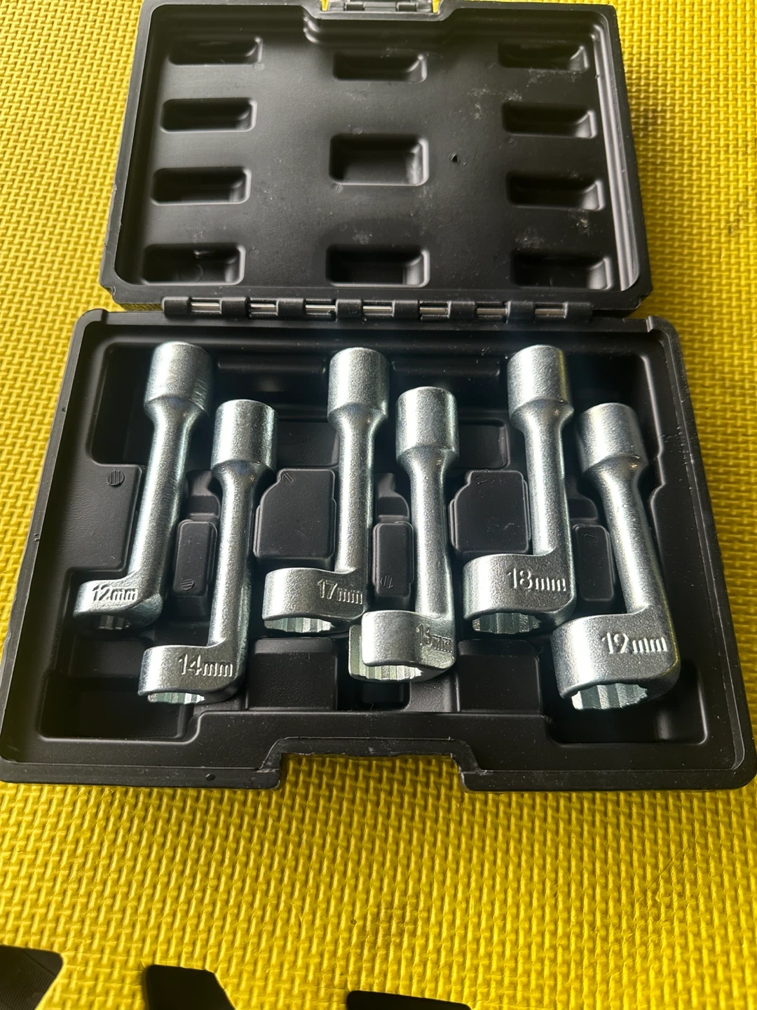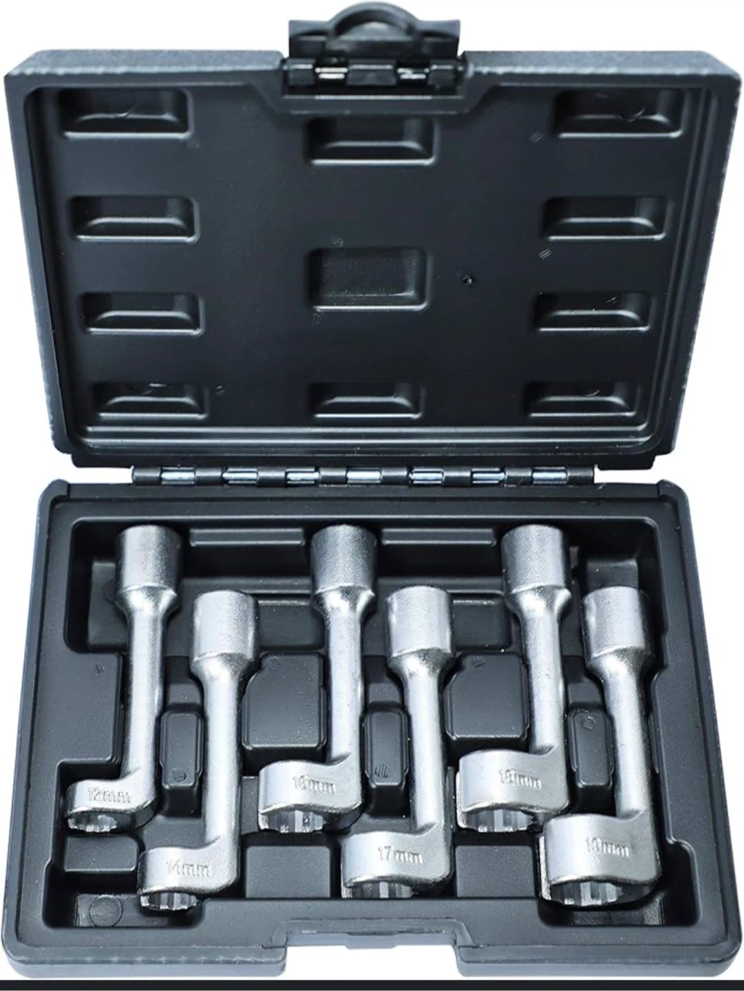 15DPTOOL 12pt 1/2" Dr L-Type Diesel Injector Line Socket Wrench Set. This set includes 6 wrenches with sizes 12, 14, 16, 17, 18, and 19mm. Comes in its original case!