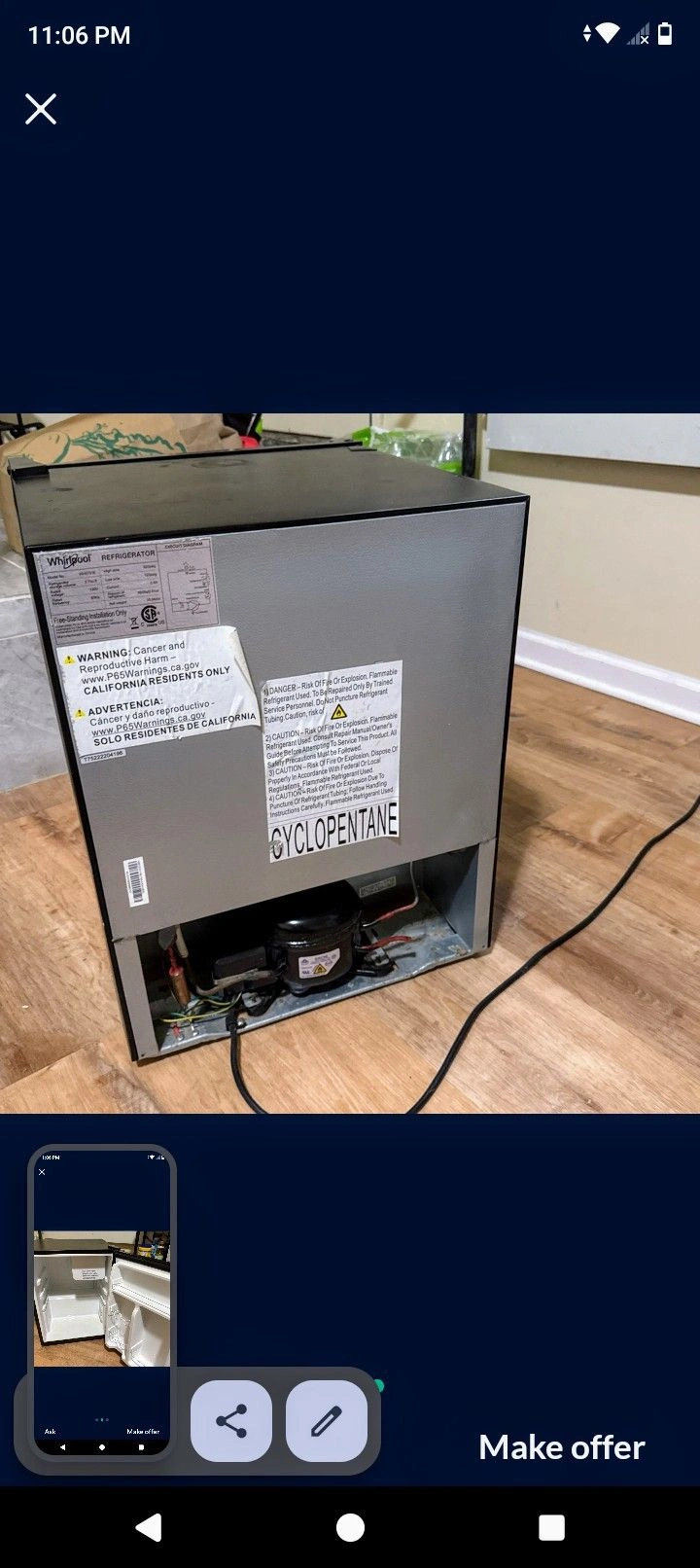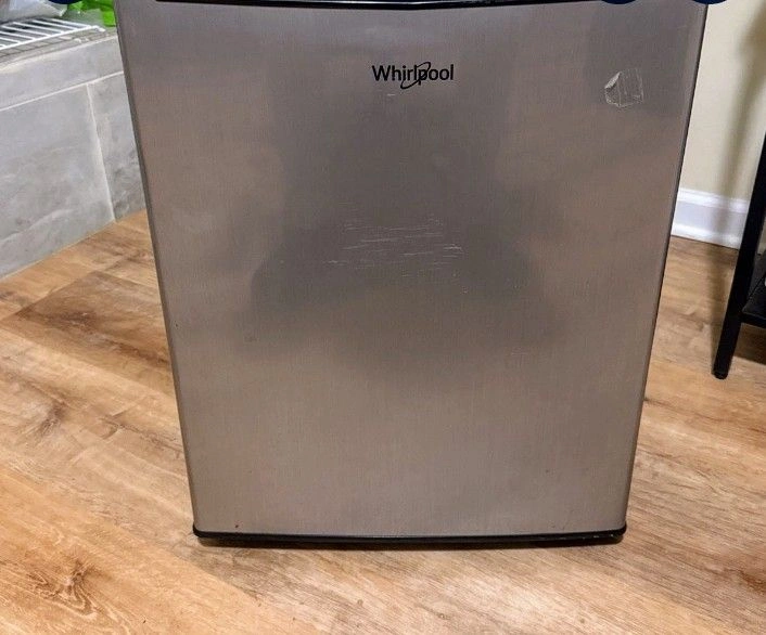 Pick up only Color: Black& Gray Finish: Aluminum Type: Mini-fridge Brand: Whirlpool Capacity: 1-5 cu ft