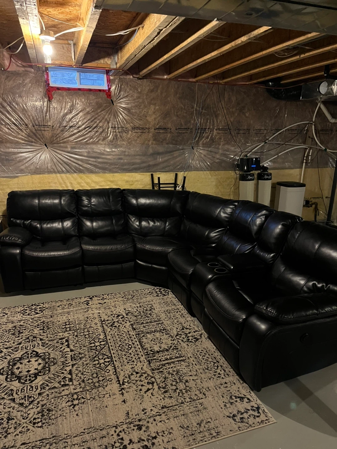 Selling a black leather sectional sofa. It's in great shape and would look great in any living room! The sofa is made of leather and features a reclining function.