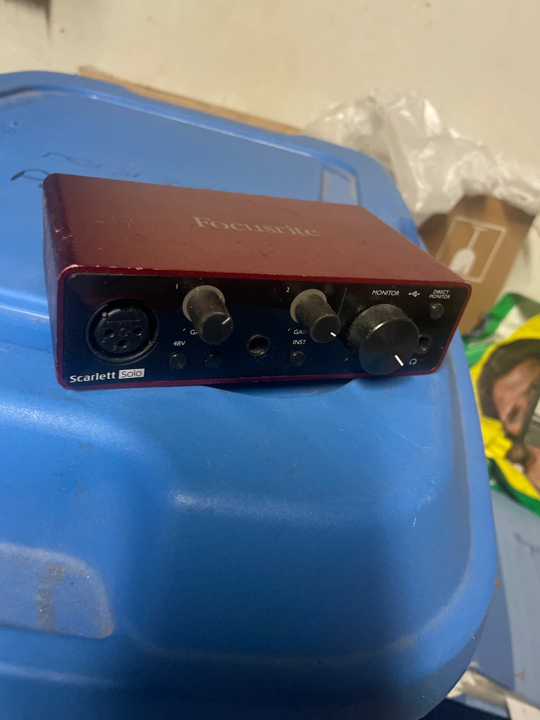 Selling a Focusrite Scarlett Solo audio interface. It's in good condition and perfect for recording music or podcasts at home. It's a great little audio interface!