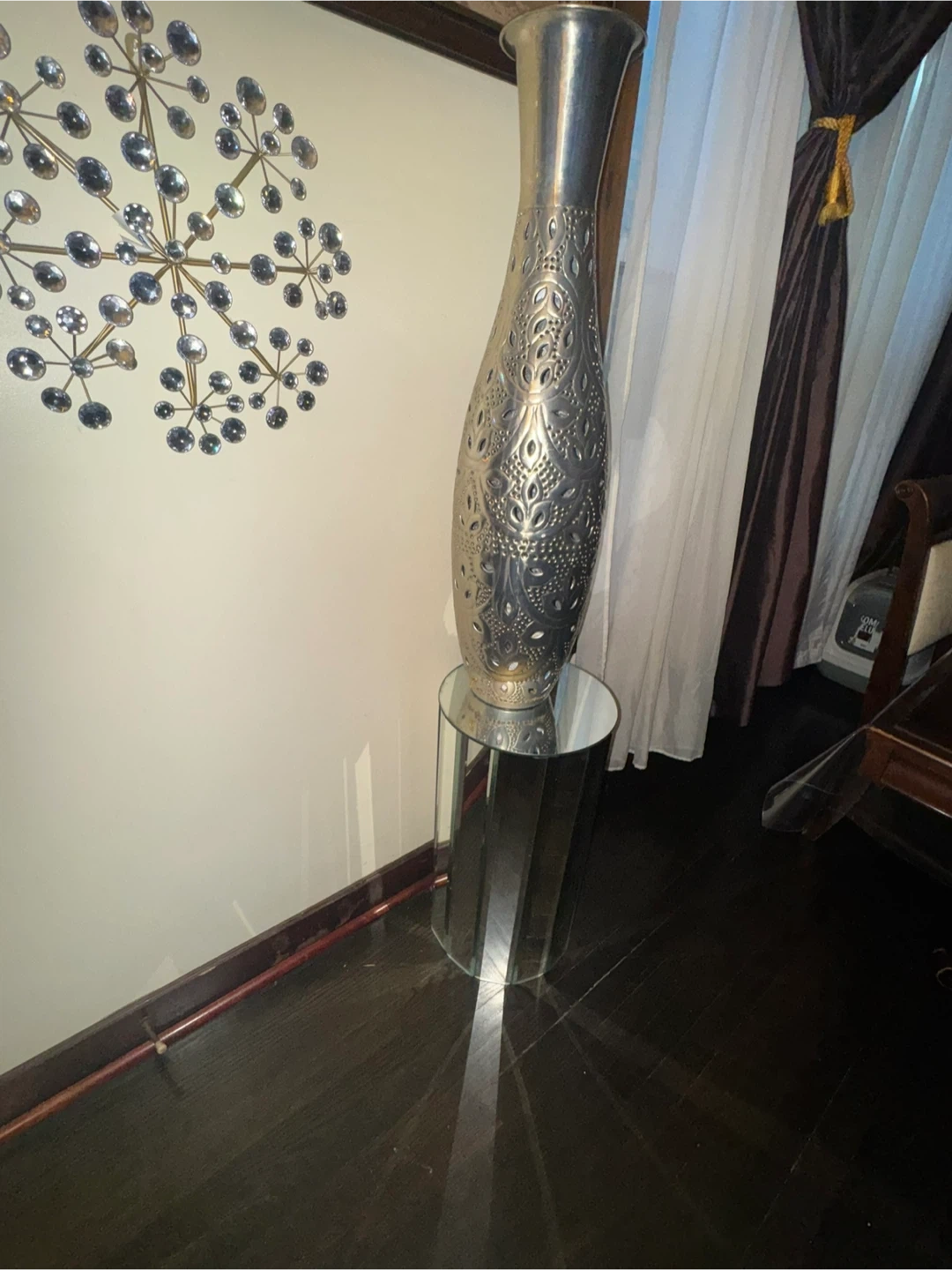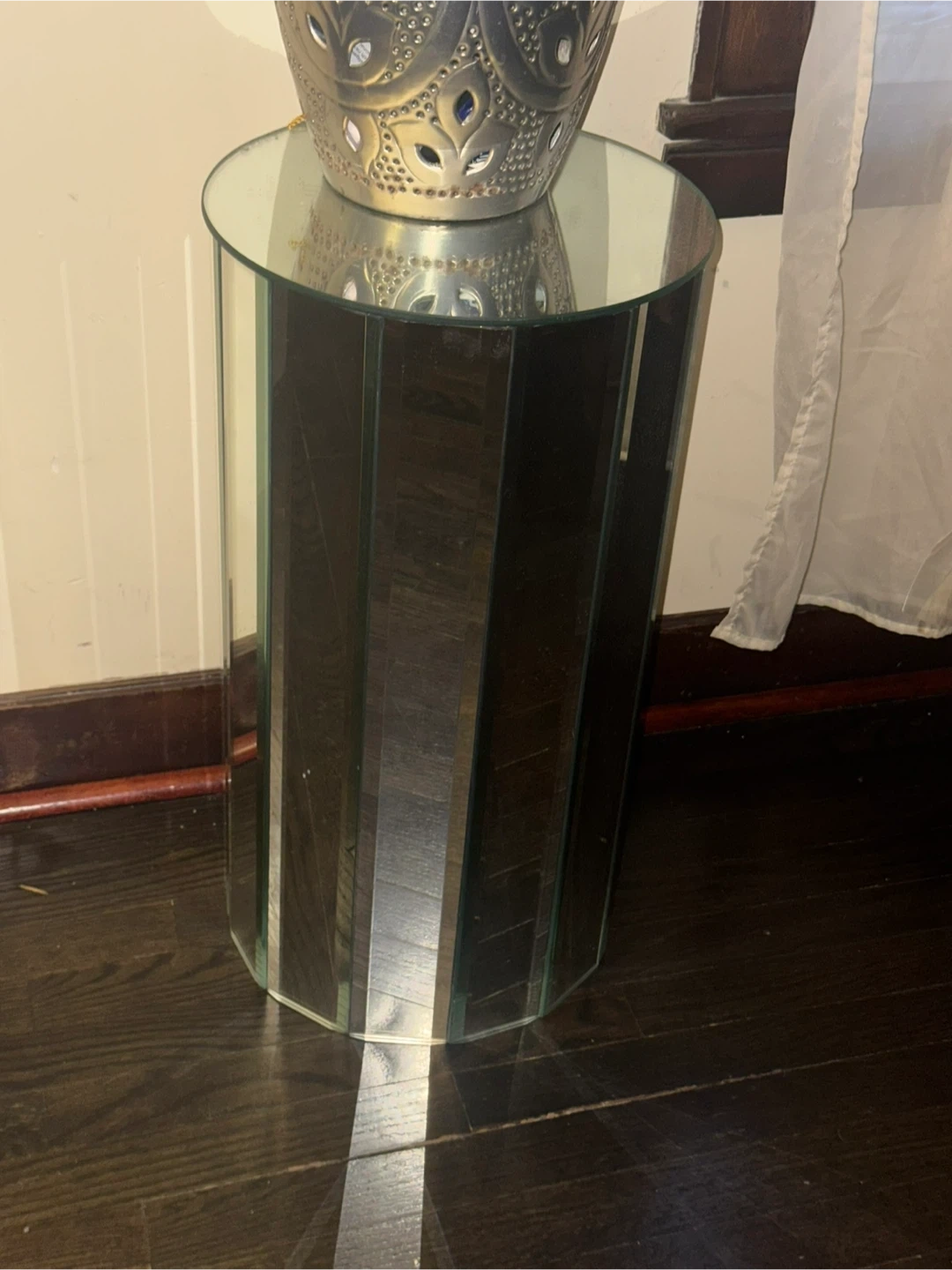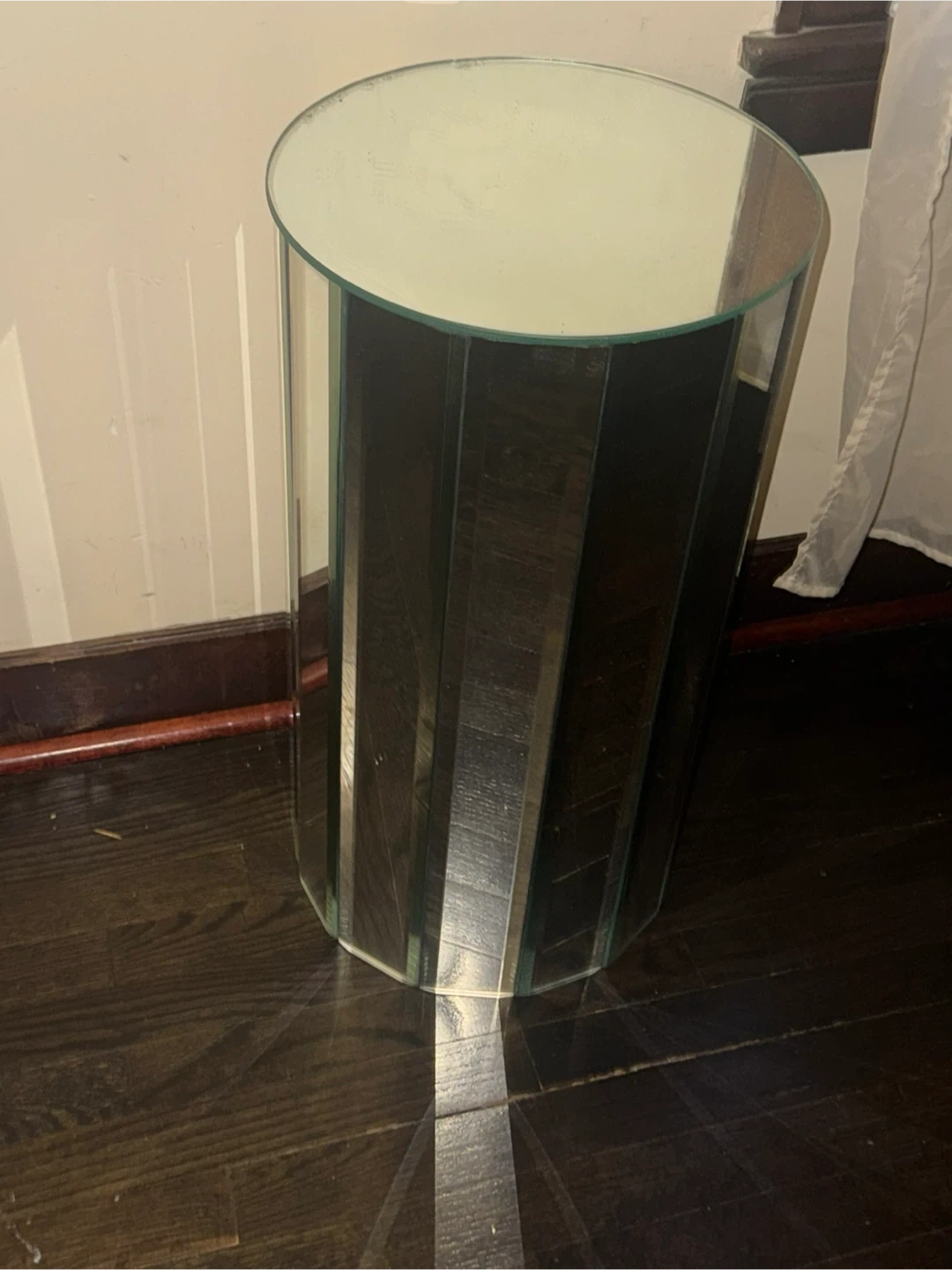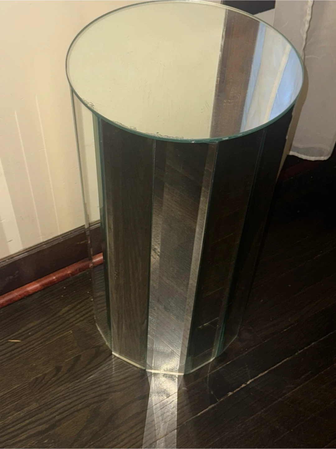 Modernist Mirrored Pedestal , side table 2 f tall / 13 “ wide