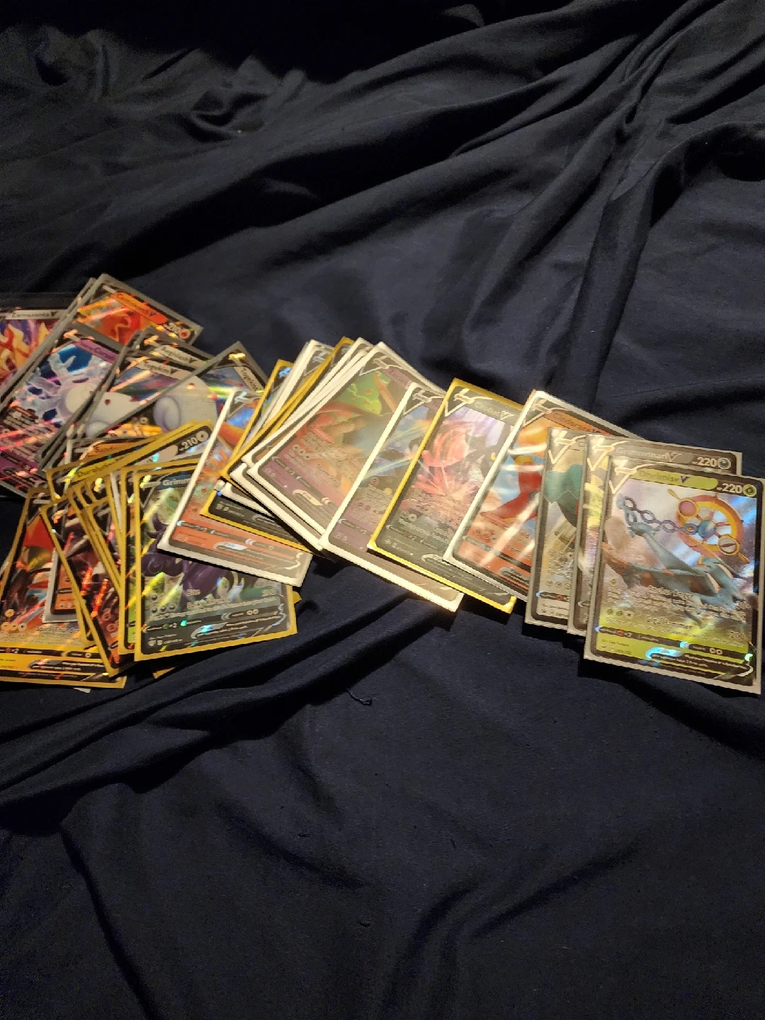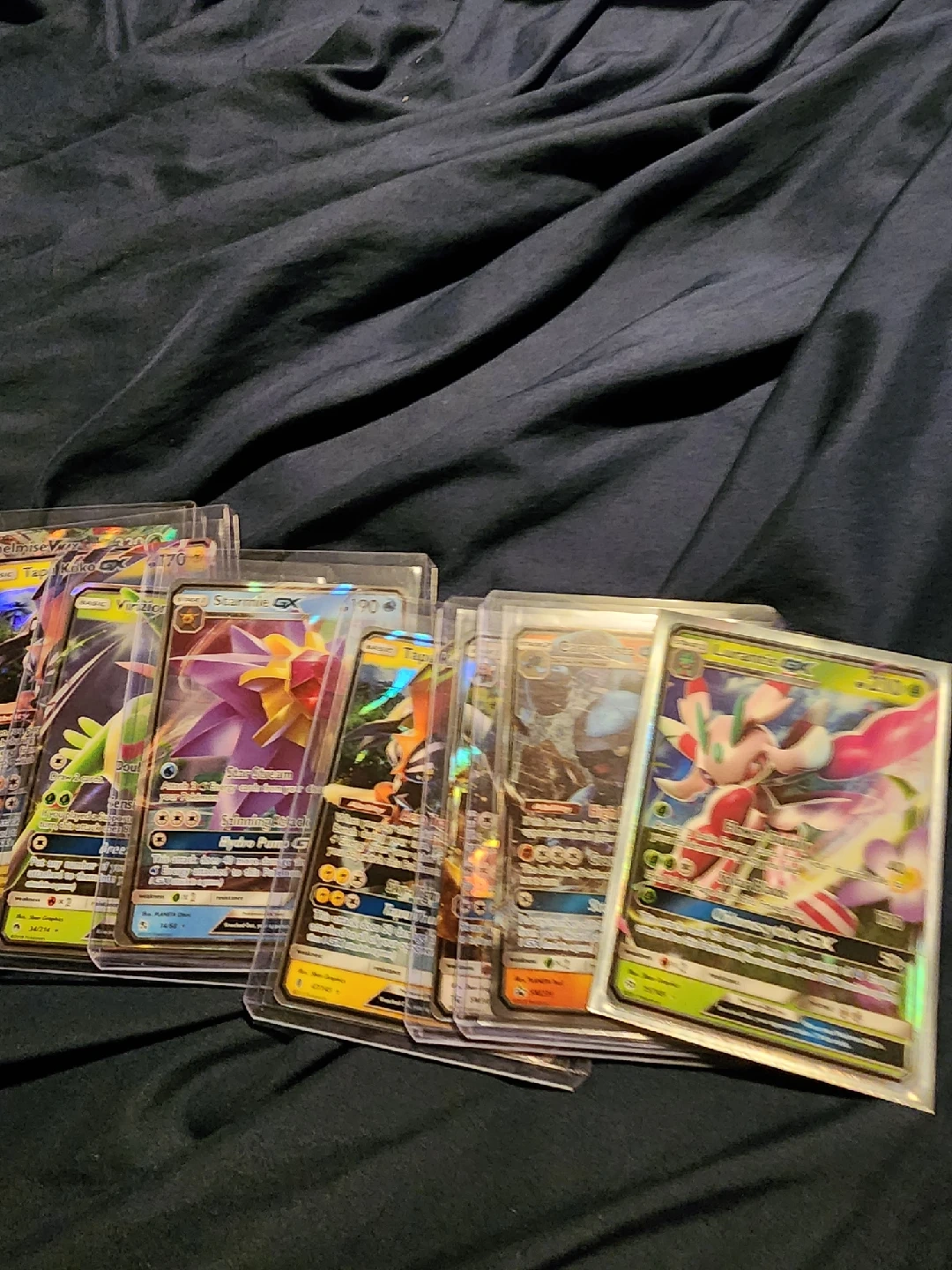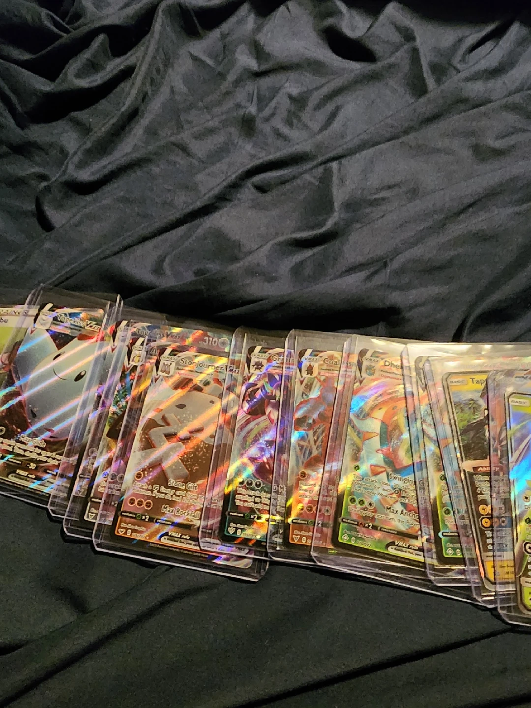Selling a collection of 100+ Pokémon trading cards! There are various cards in sleeves, including GX V VMAX and Holo cards. Great for collectors or players looking to expand their collection