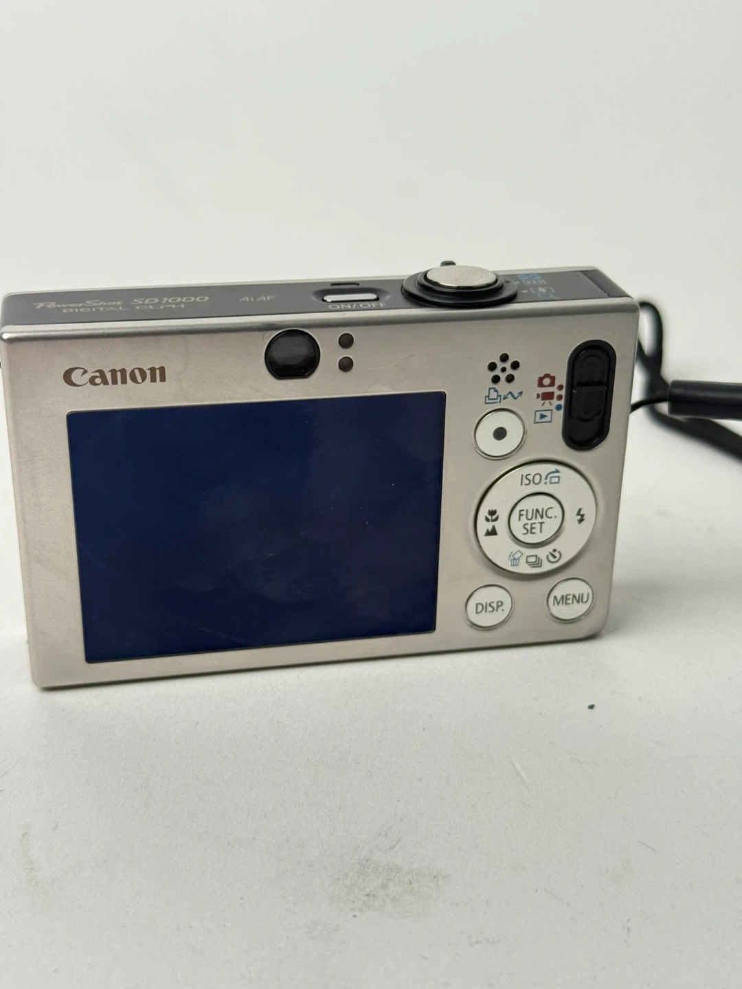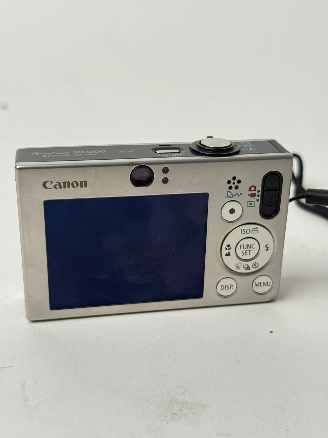 Selling a Canon PowerShot SD1000 digital camera. It's in good condition and ready for a new home. This camera features a 3x zoom lens and captures images at 7.1 megapixels. Perfect for anyone looking for a compact and easy-to-use camera!