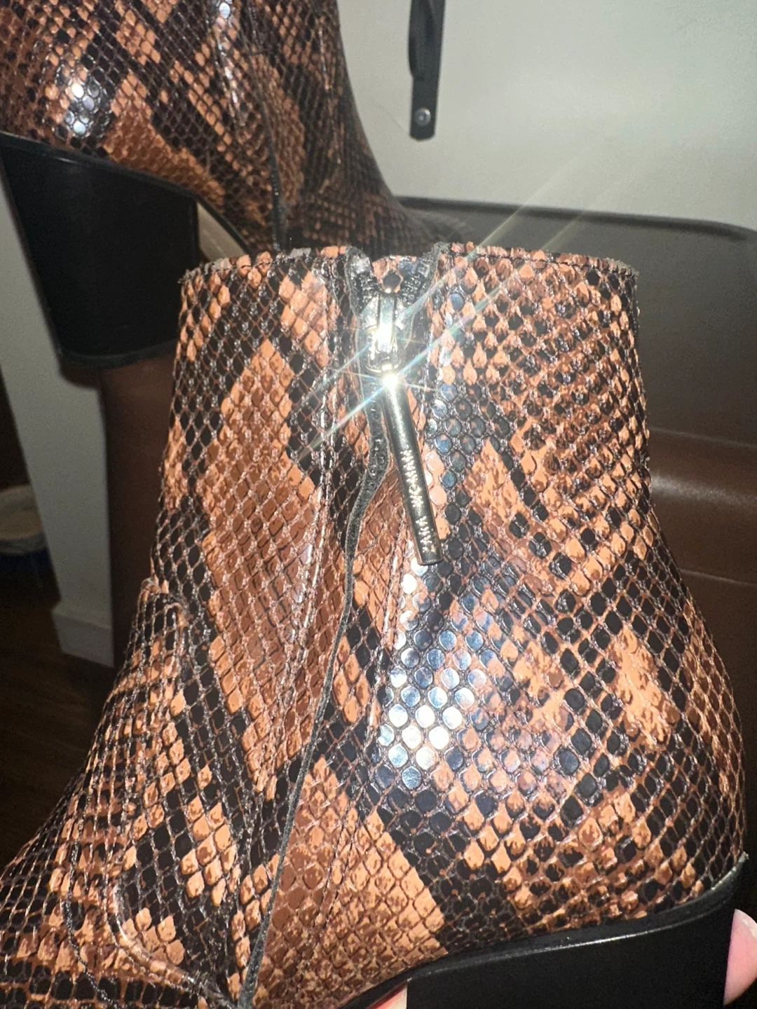 Zara Boots Brown Snakeskin Ankle Boots Size 37