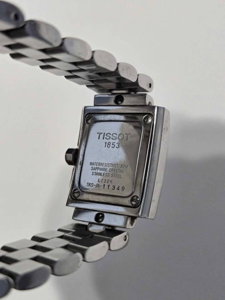 New Swiss battery installed. Overall, signs of normal wear around the casing with some scratches and bracelet. Watch only. Brand - Tissot. Model - L730K. Gender - Ladies. Year - 1990s. Dimensions – 22mm X 34mm. Movement - Quartz. Glass - Sapphire. Case Material - Stainless Steel. Strap - Stainless Steel. Water Resistance - No. Pickup in Mississauga.