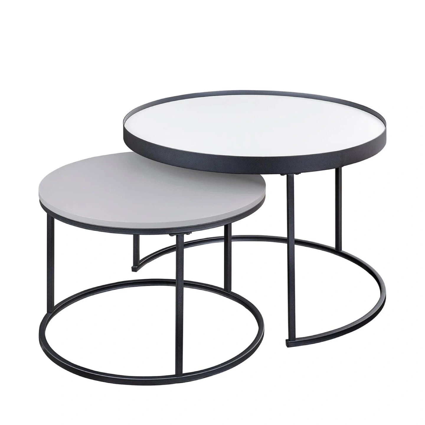 * Solid white large tabletop, grey small tabletop, and black metal legs