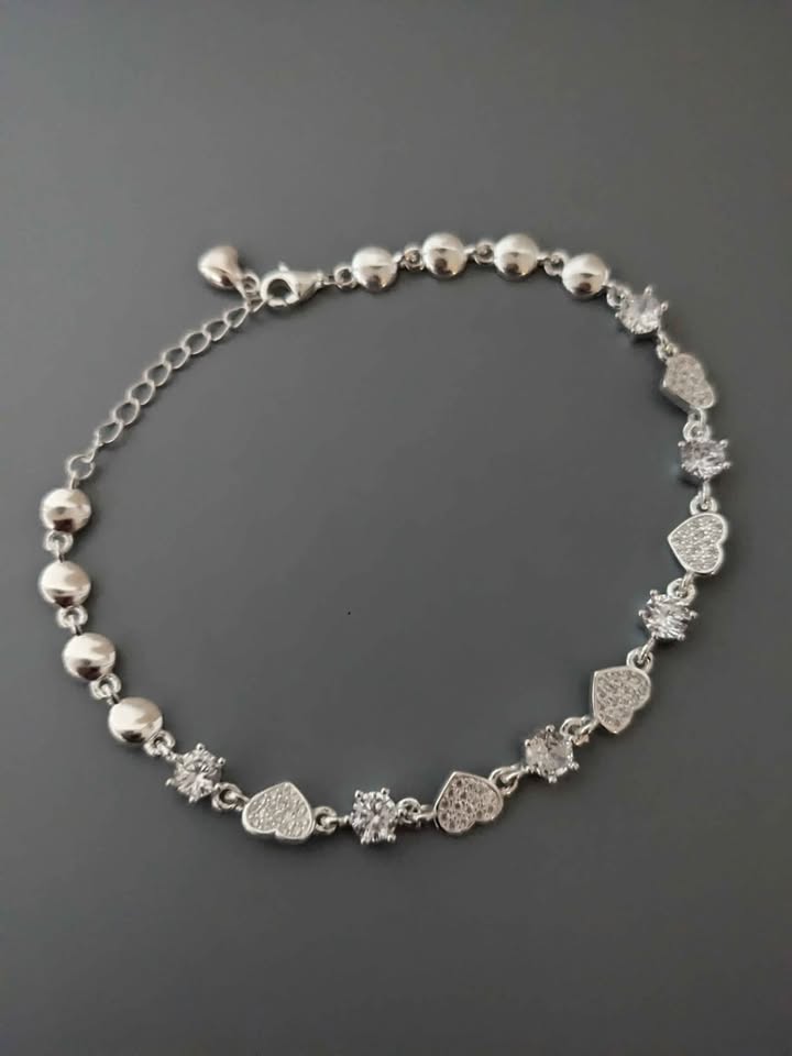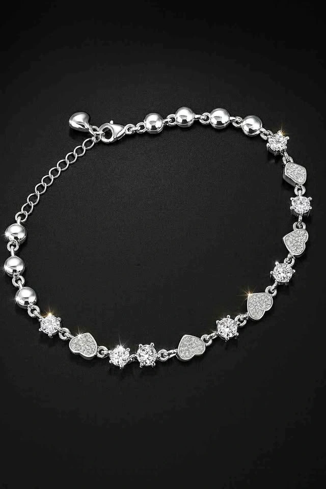 From Lingna Jewelry—renowned for Brazil-inspired elegance—this 925 sterling silver bracelet blends romance and brilliance. Featuring alternating polished beads, prong-set cubic zirconia stones, and pave-encrusted heart charms, it’s crafted for sparkle and sophistication.