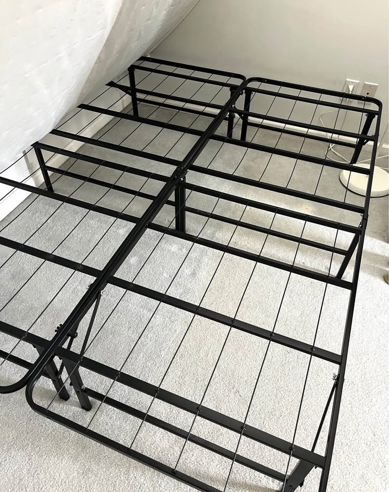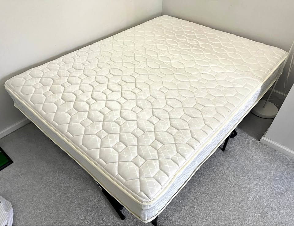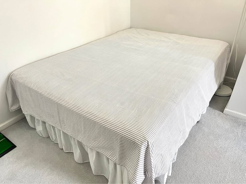 MOVING SALE!! Queen Mattress+Frame. Includes bedsheets+bedskirt!