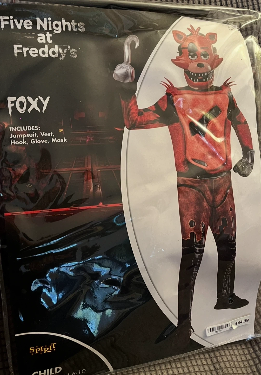 Selling a Foxy costume from Five Nights at Freddy's! It's a child's medium, fitting sizes 8-10. Bought from spirit