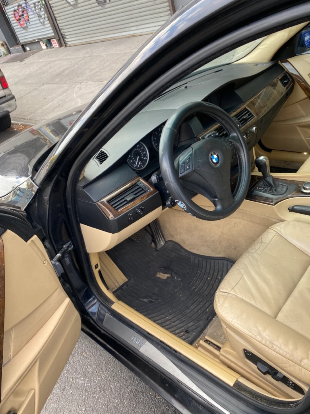 Selling a BMW 530xi sedan. It has a black exterior and a beige interior. It is in used condition. it runs good good on gas four-door sunroof clean in and out no rust must sell having another car can keep two cars