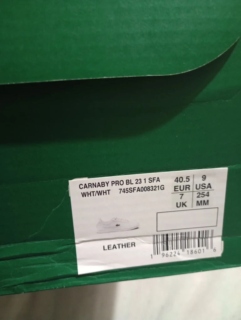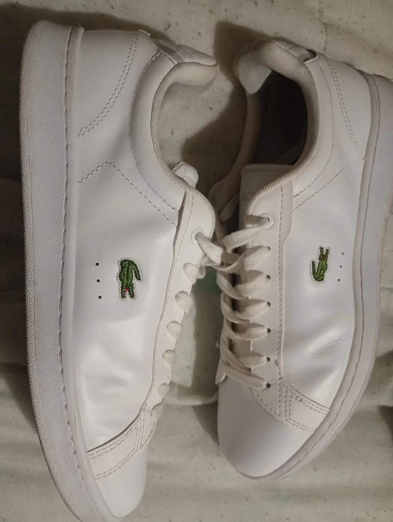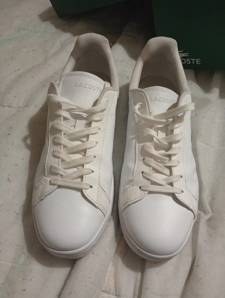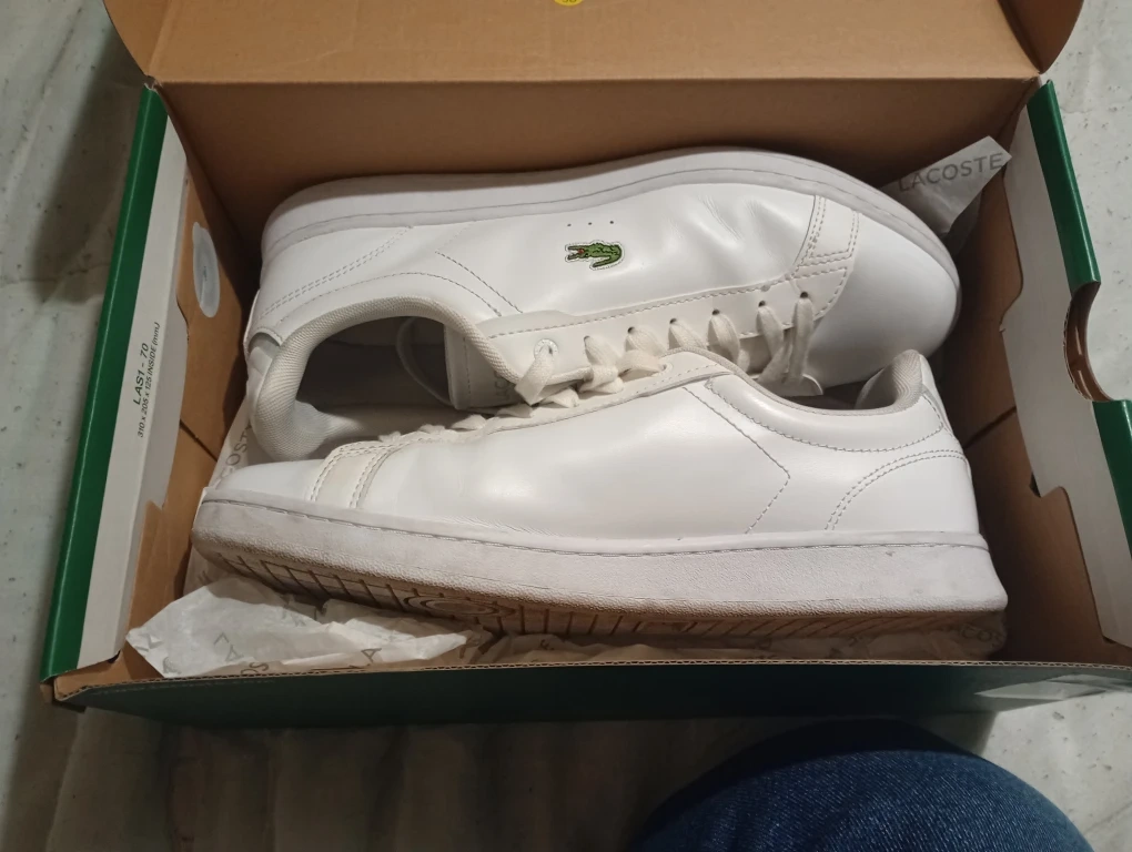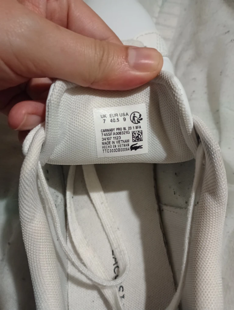 Selling a pair of Lacoste Carnaby Pro BL 23 1 SFA sneakers in white. They're in good condition and come with the original box. The size is US 9.