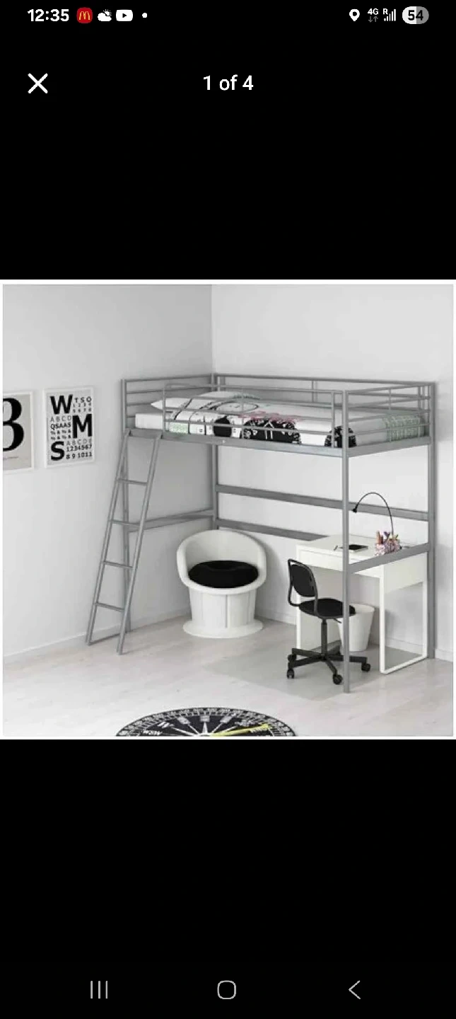 Selling an IKEA SVÄRTA loft bed frame ! It's a great space-saving solution for smaller rooms. The bed frame is in good condition and includes the ladder. The desk provides a dedicated workspace, perfect for studying or working from home. Mattress also included!