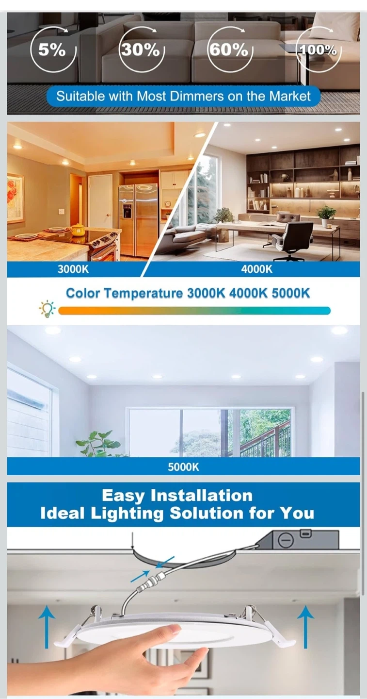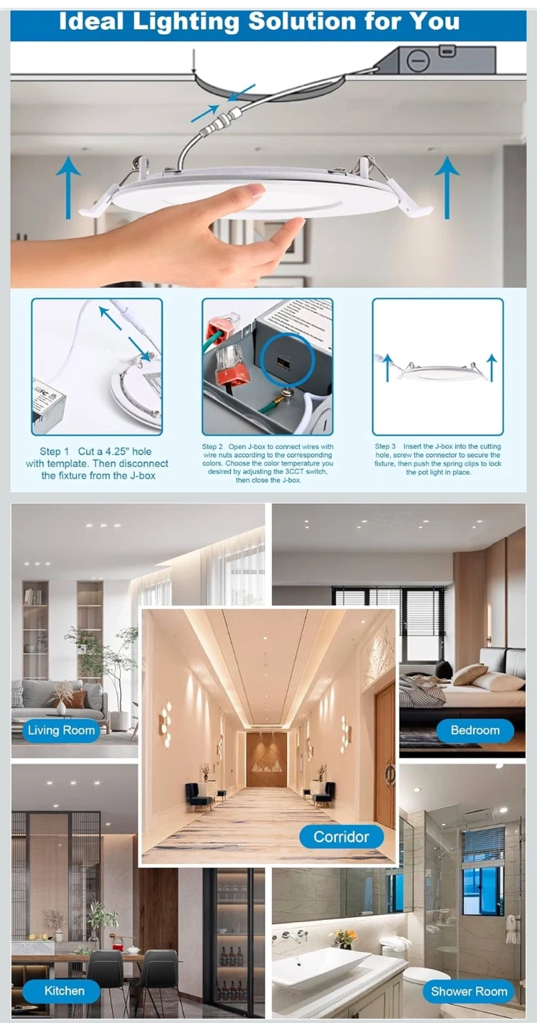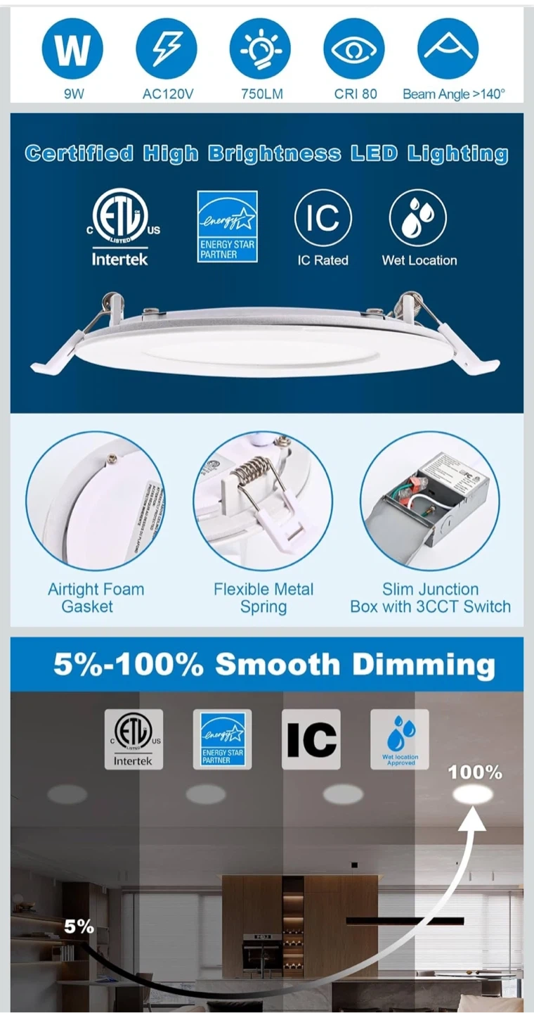 6 Selling LED Recessed Lights, 4" type. Compatible for wet locations and suitable with most dimmers on the market. Ideal lighting solution for your living room, corridor, kitchen, bedroom, and shower room